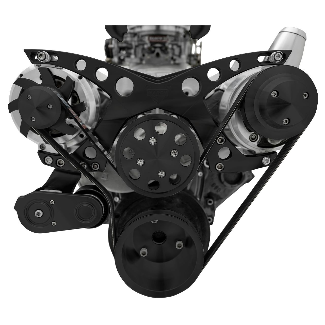 Small Block Chevy Revolver Serpentine System – PS & ALT – Saginaw-Keyway – Billet – Black