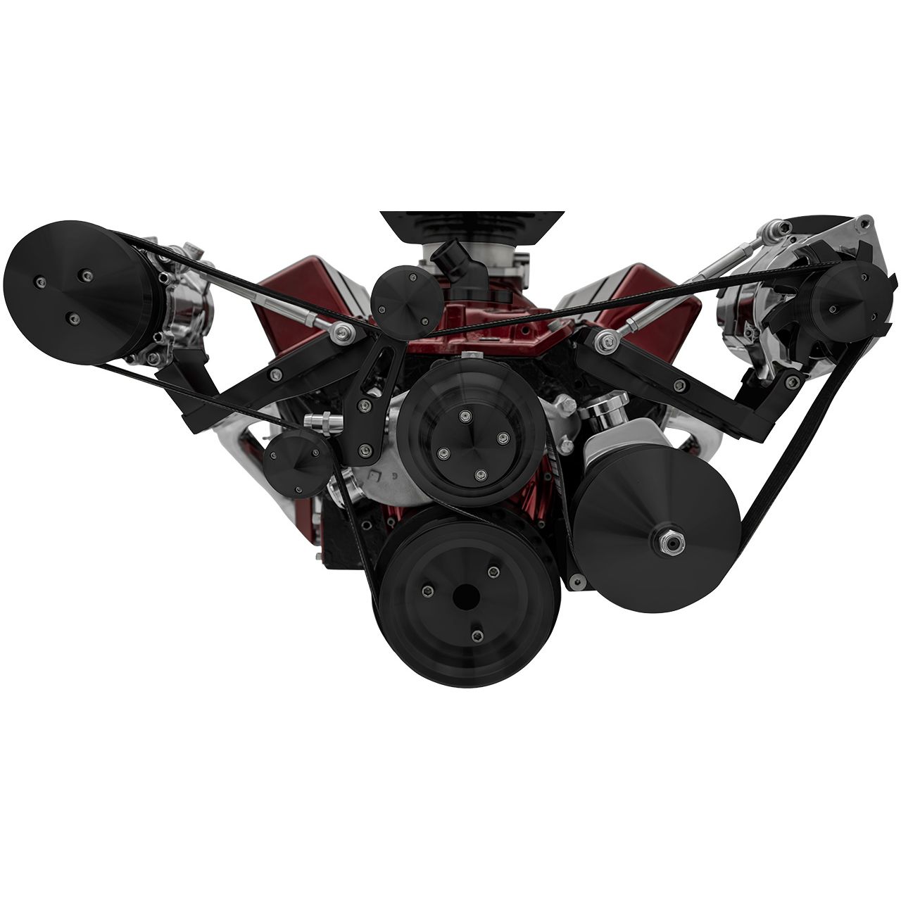 Small Block Chevy Serpentine Conversion Ultra – SWP – Reverse, Outward – Saginaw-Press – Black