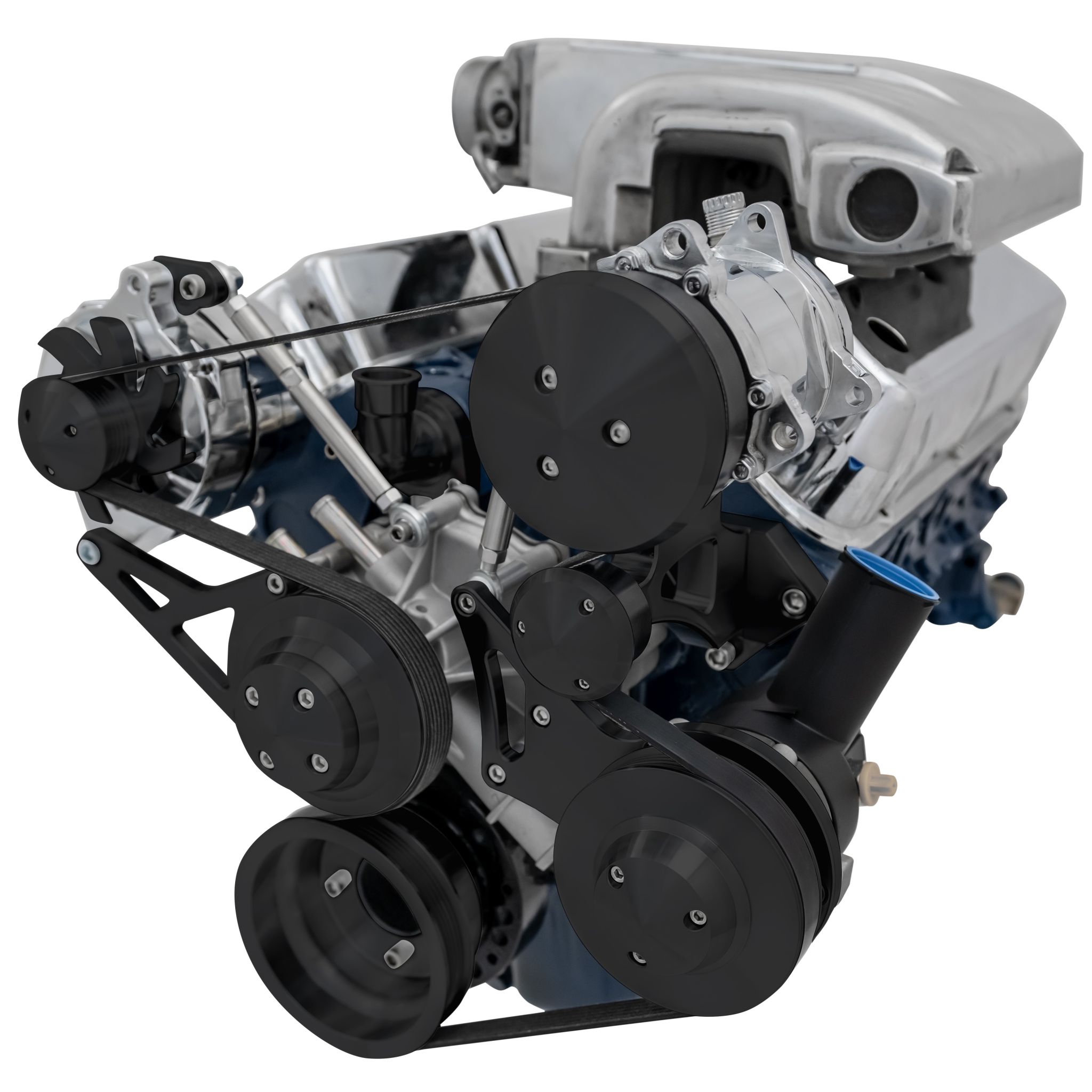 Small Block Ford High Flow Serpentine Conversion Deluxe – 302 – AC & PS – Black