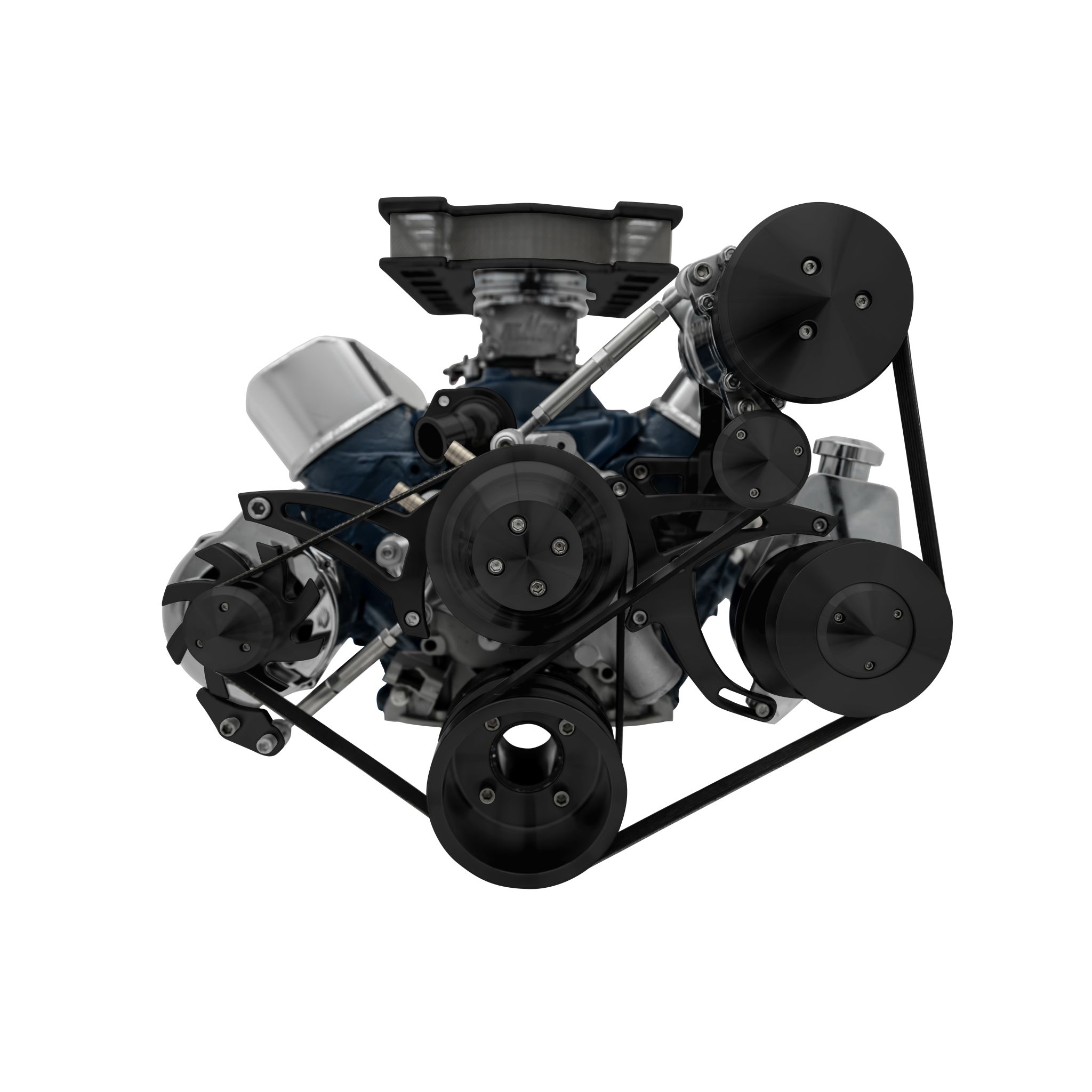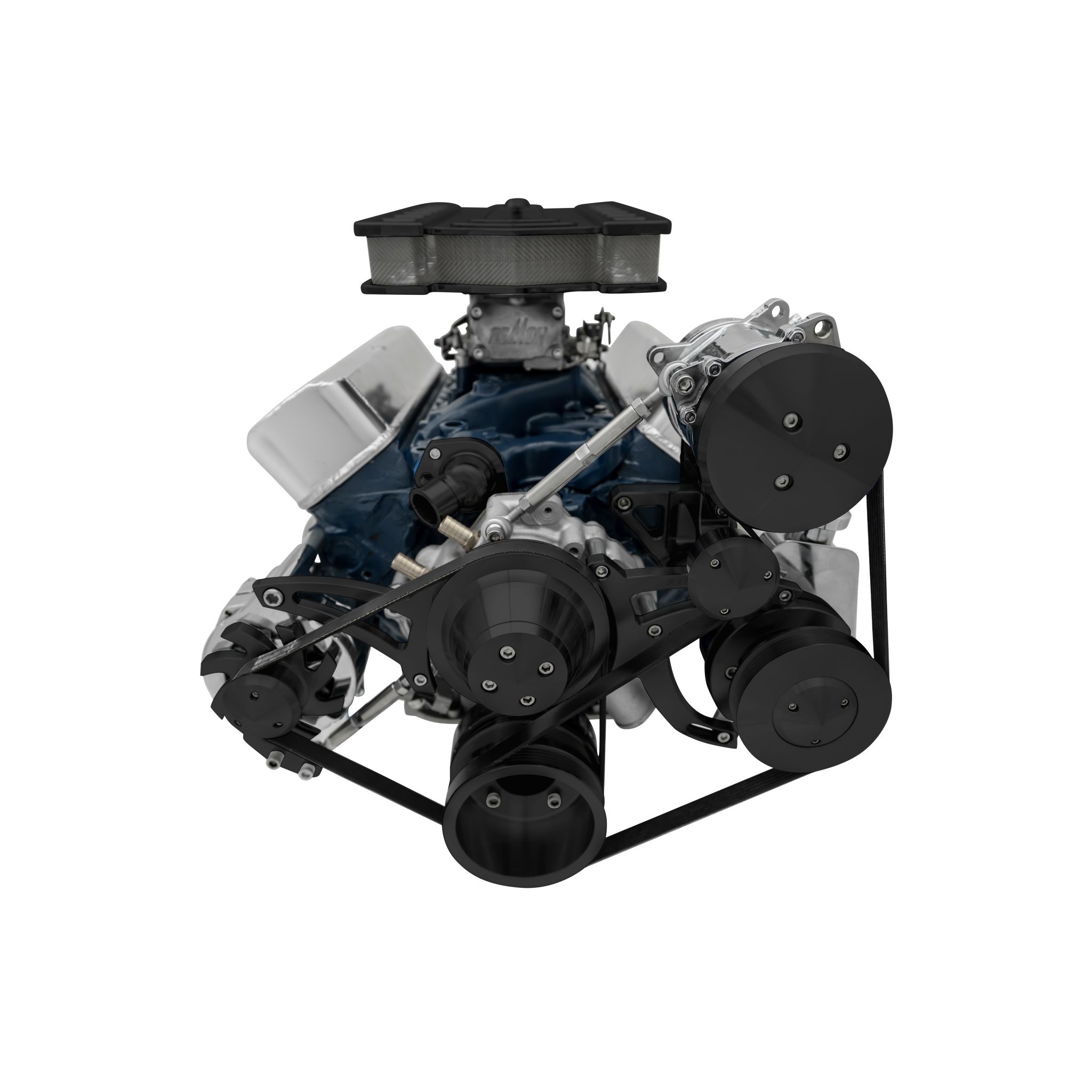 Small Block Ford Serpentine Conversion – Ultra – 302 – Late – 4 Bolt – AC & PS – PS-Saginaw – Black