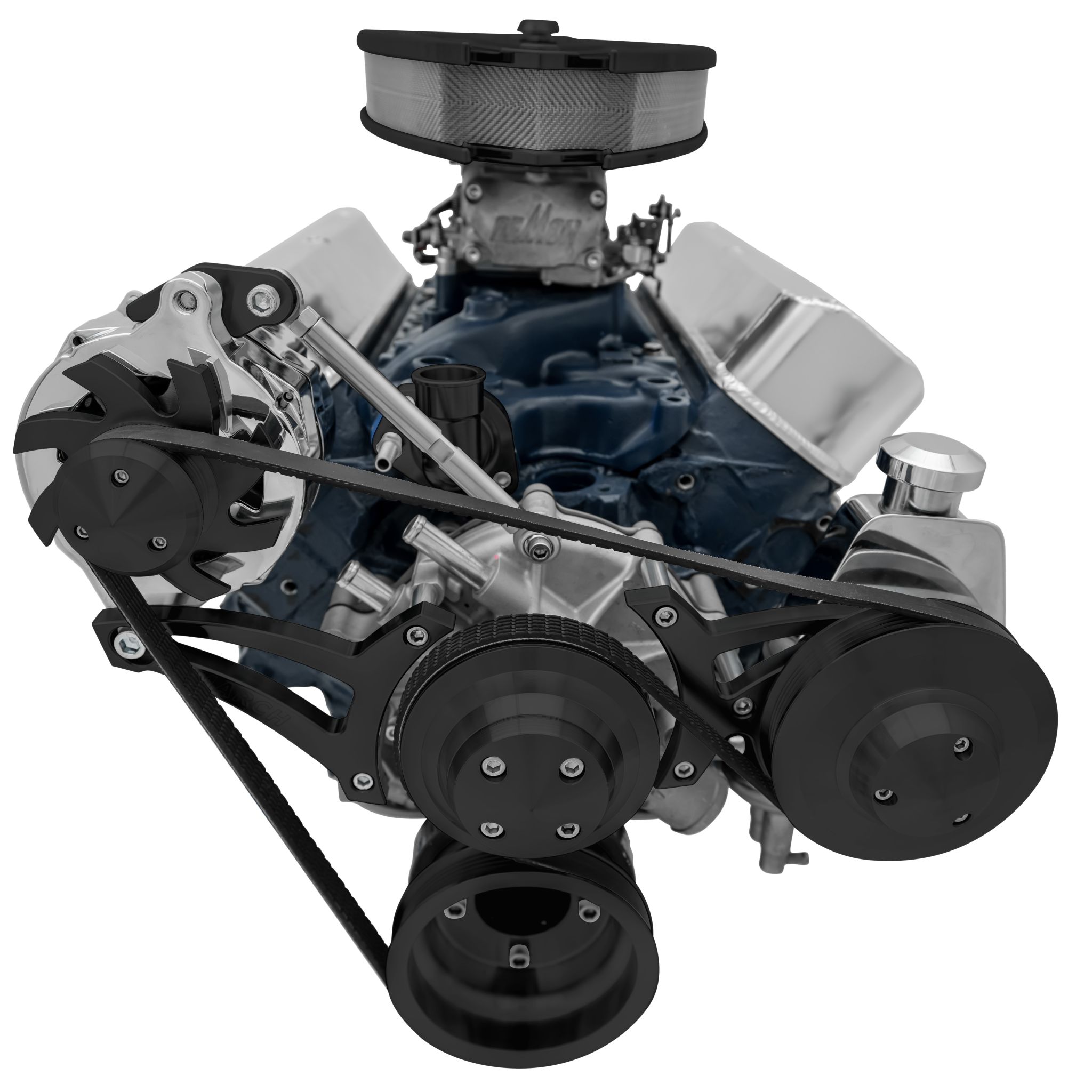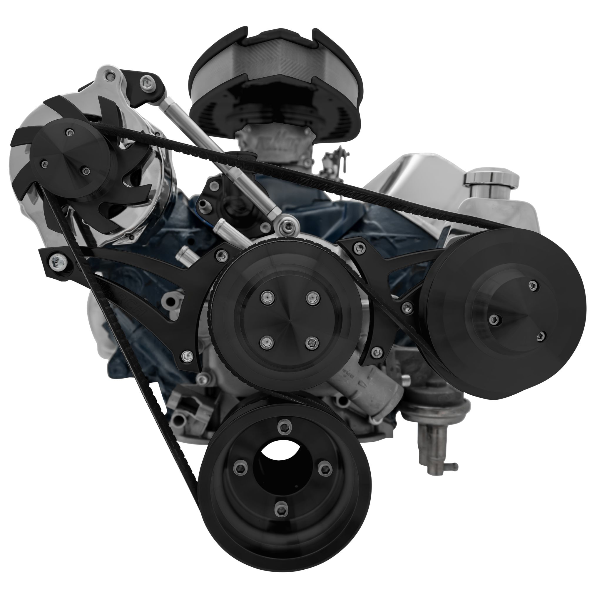 Small Block Ford Serpentine Conversion Ultra – Mid-Mount – 302 – PS-Saginaw – Black