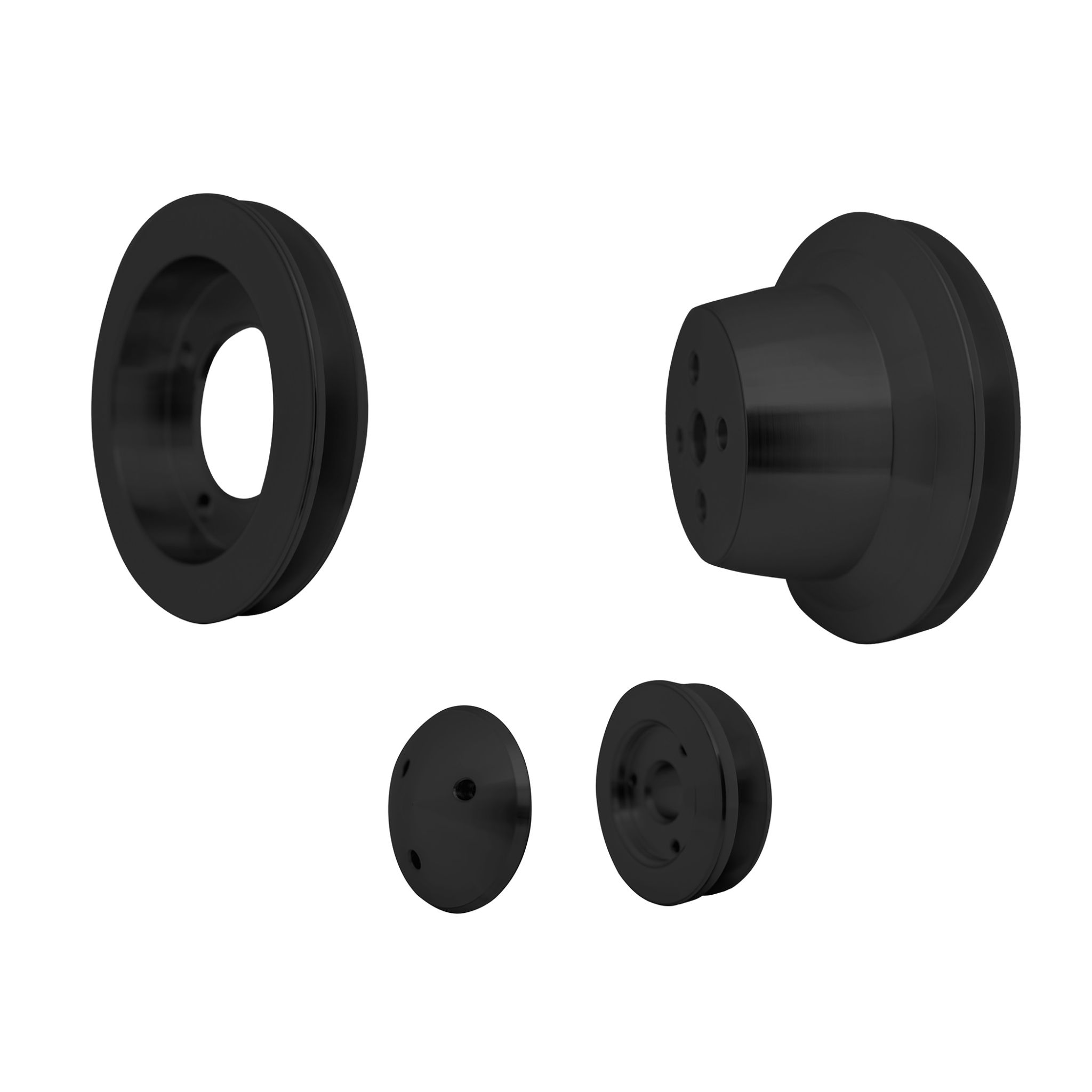 Small Block Ford V-Belt Pulley Kit – 1V – 4 Bolt – Early – Black