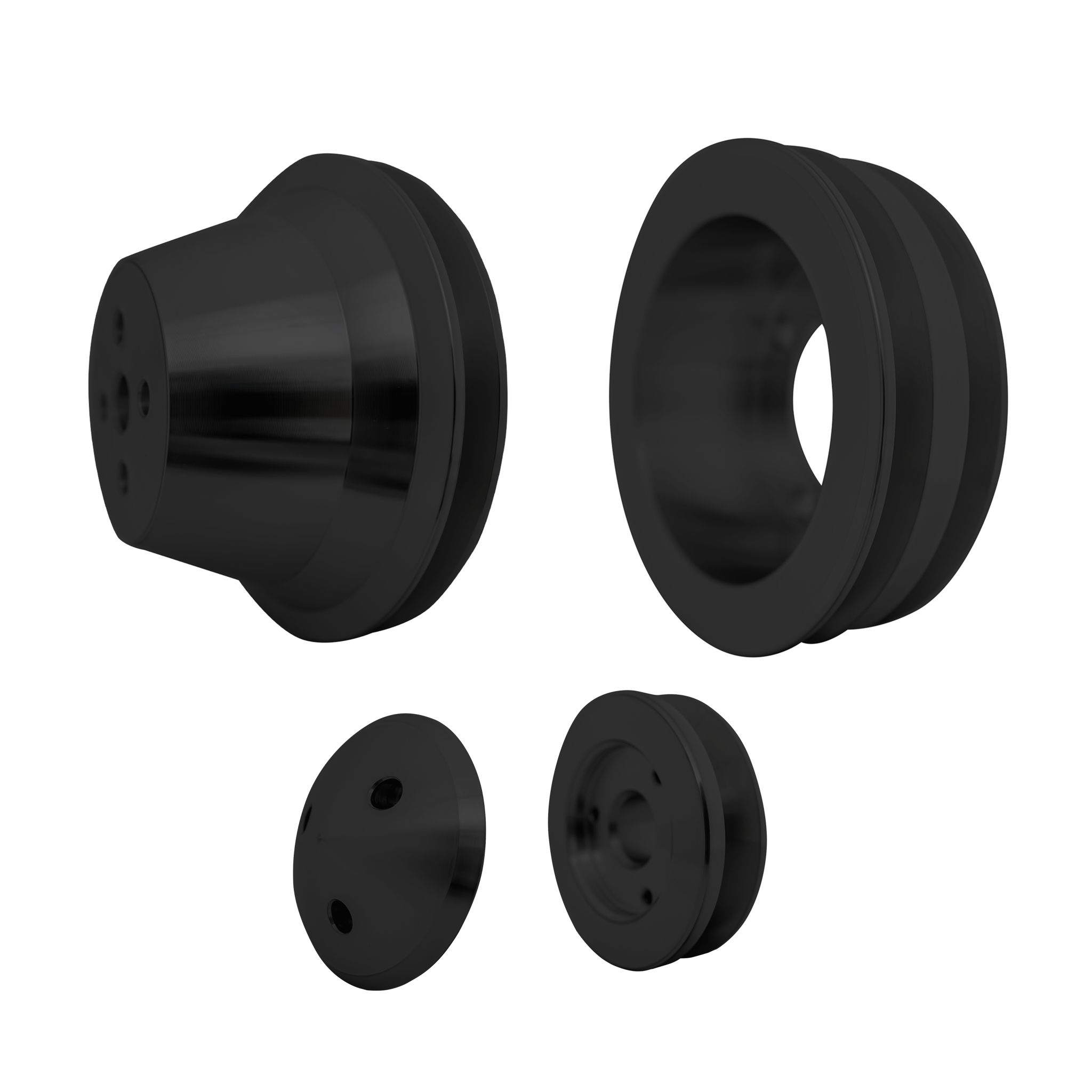 Small Block Ford V-Belt Pulley Kit – 2V Crank, 4 Bolt, Late – Black