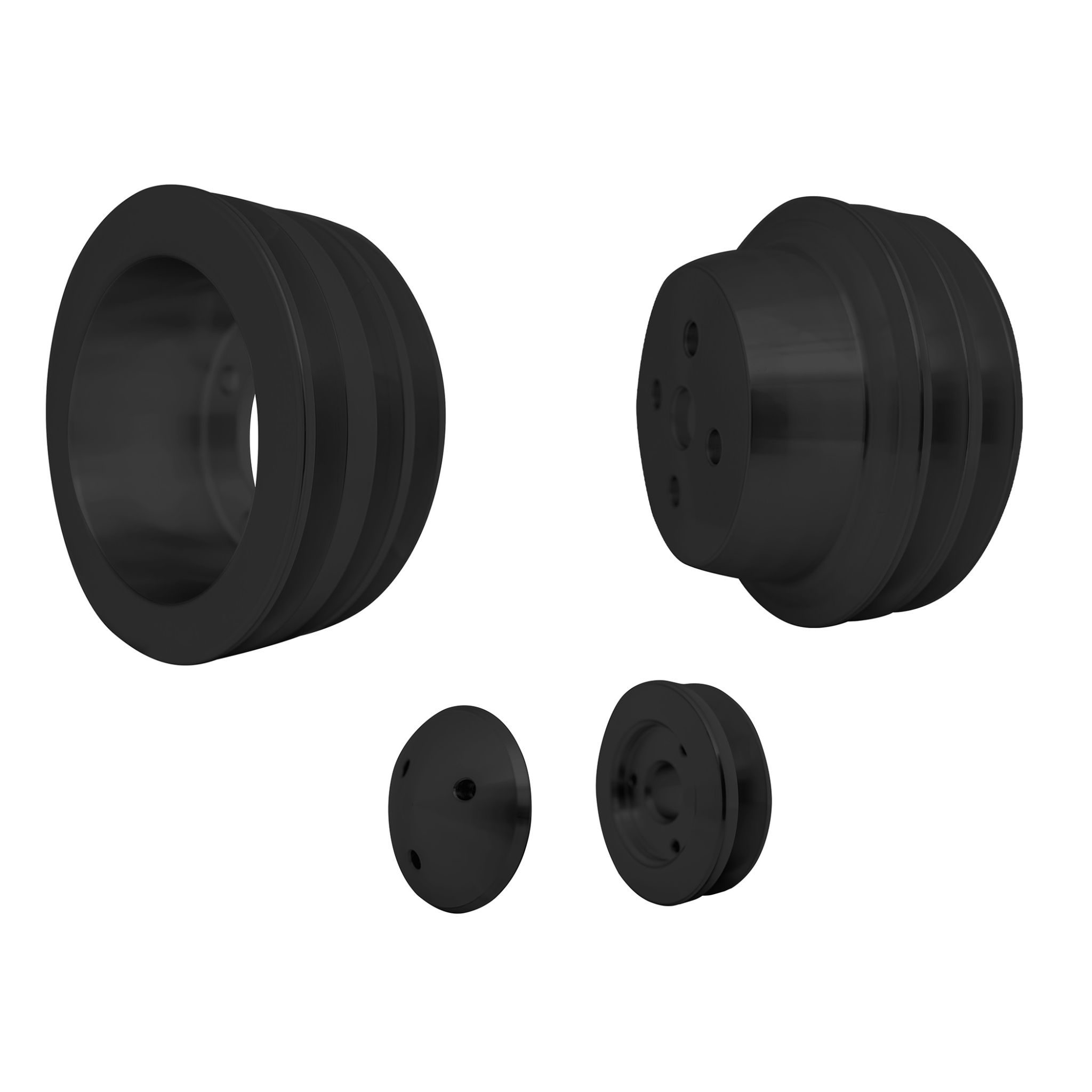 Small Block Ford V-Belt Pulley Kit – 3V – 4 Bolt – Early – Black