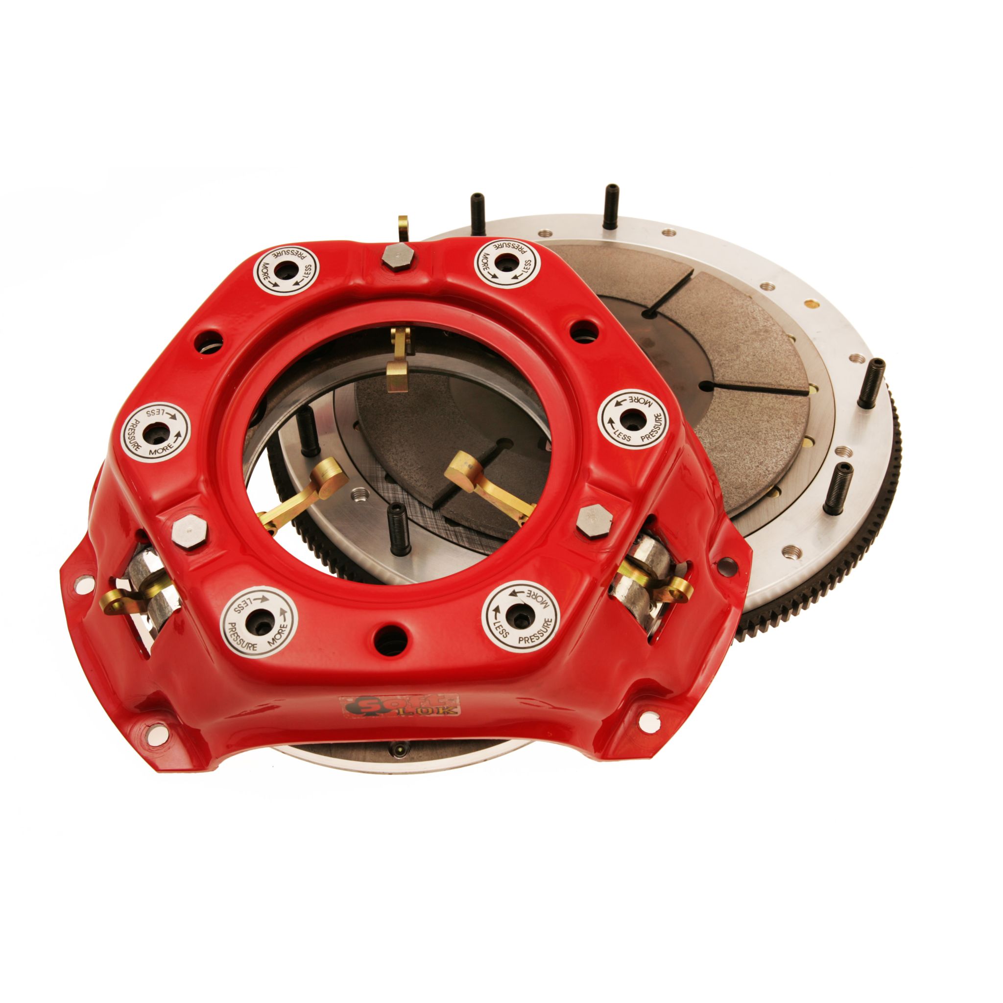 The McLeod Soft Lok assembly is the most widely used McLeod clutch for drag racers. This unit is NOT recommended for street use. As a NHRA and IHRA record holder, this assembly has low static pressure for a light pedal effort and soft clutch engagement. This unit leaves the starting line harder with less tire spin. The Soft Lok is equipped with adjustable spring pressure and is available with counterweights. Included is a pressure plate, sintered iron disc, and aluminum flywheel.