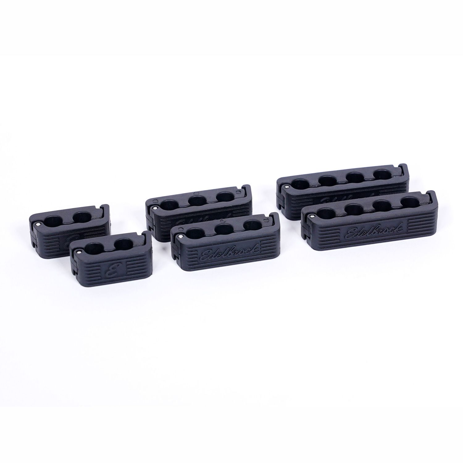 Edelbrock Wire Separator Kit #22799 will organize spark plug wires on 4-, 6- and 8-cylinder engines and includes six separators (two 2-wire, two 3-wire and two 4-wire) designed to work with wire diameters up to 8.5mm. Edelbrock Separators are constructed of glass-fiber-reinforced nylon for durability that resists temperature up to 464 degrees. Each Separator features a click-lock folding design that securely hold wires in place to prevent cross-firing between cylinders. Separators have a textured black finish to blend in with any engine compartment and the Edelbrock logo lets everyone know that you've chosen the best.