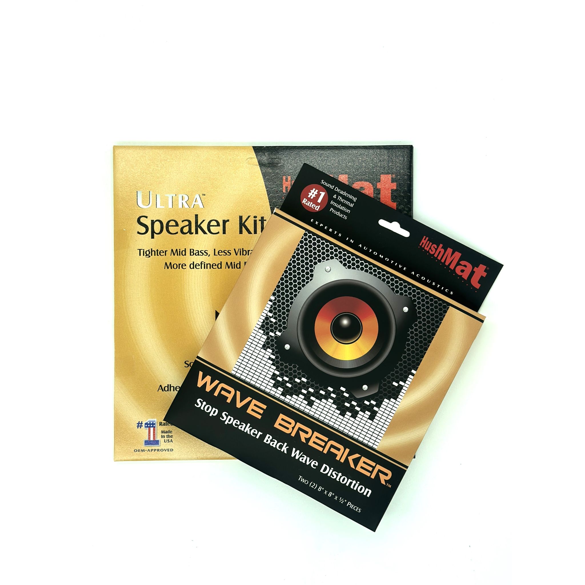 HushMat Speaker and Wave Breaker Combo Kit. HushMat ensures noise reduction, creating a premium sound environment when paired with the Wave Breaker, this kit delivers crisp, clear audio by minimizing vibration and wave interference.