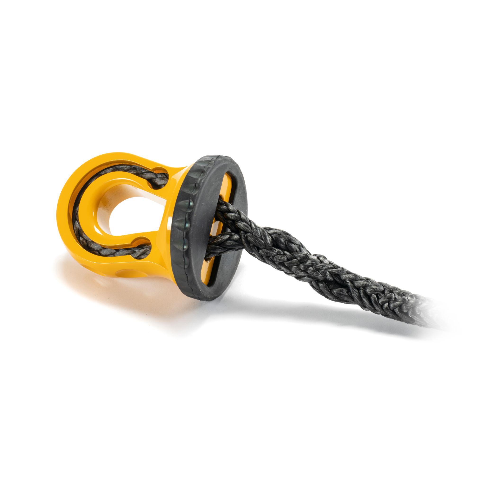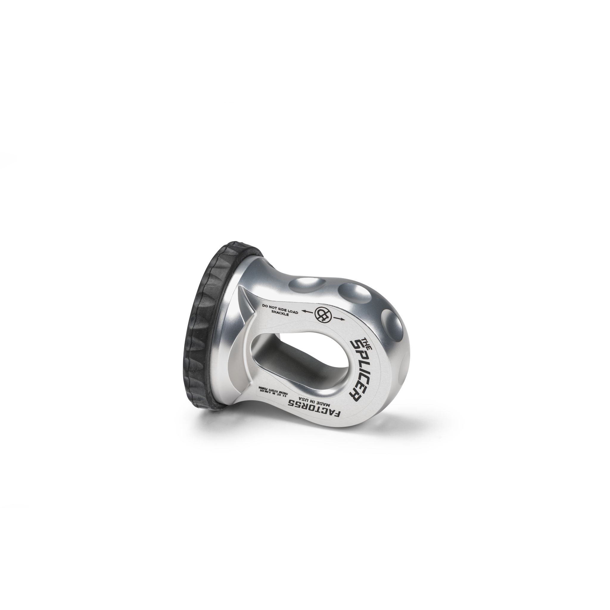 The world?s first splice on synthetic rope shackle mounting thimble with rope protection and integrated rubber pad. The unique machined rope passage provides a tough outer barrier to protect against rope impact and abrasion as well as UV exposure protection. Compatible with synthetic ropes up to 1/2" in diameter. NOTE: Unlike the Factor 55 ProLink and Flatlink shackle mount products, The Splicer requires synthetic rope splicing knowledge. We recommend either the locking Brummel Splice or Long Bury Splice. Due to the splice-on design, the Working Load Limit (WLL) is based on the rope diameter used. Each Splice-On Shackle Mount exceeds minimum bend radius requirements to provide full breaking strengths of synthetic winch lines used. Made in USA