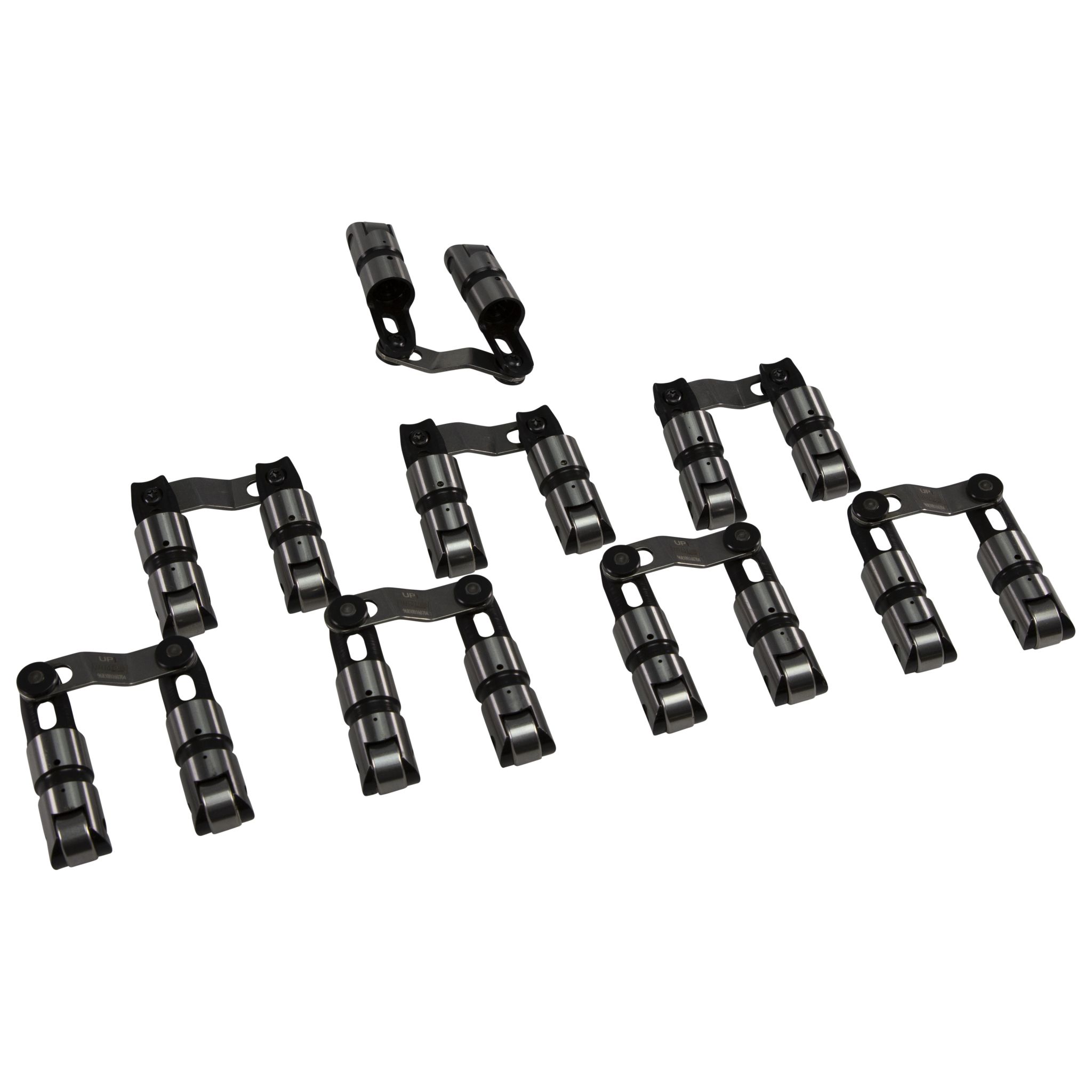 staked axles eliminate clips and provide robust axle retention. This permanent axle retention feature increases the stiffness of the lifter ears and helps prevent the ears from spreading. Sportsman Lifters are built from 8620 premium steel for increased strength and wear resistance and feature a captured link bar design. They utilize a tapered and slotted link bar tower for reduced weight and improved aesthetics. The lifters also feature a tall body to enable use in both standard and .300" tall lifter bores – the result is increased strength and less lifter bore wear.