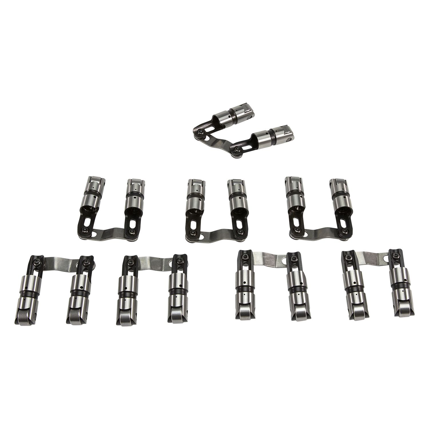 staked axles eliminate clips and provide robust axle retention. This permanent axle retention feature increases the stiffness of the lifter ears and helps prevent the ears from spreading. Sportsman Lifters are built from 8620 premium steel for increased strength and wear resistance and feature a captured link bar design. They utilize a tapered and slotted link bar tower for reduced weight and improved aesthetics. The lifters also feature a tall body to enable use in both standard and .300" tall lifter bores – the result is increased strength and less lifter bore wear.