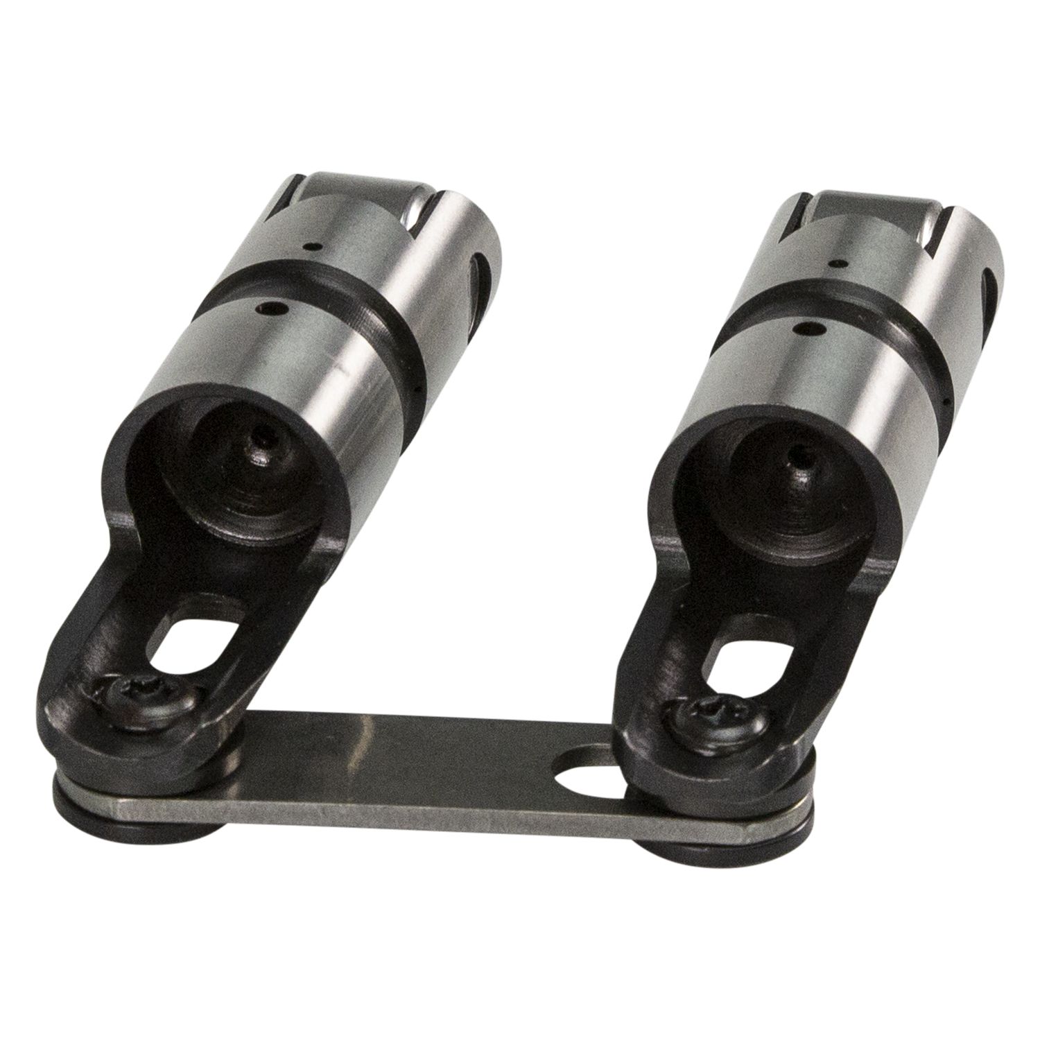 staked axles eliminate clips and provide robust axle retention. This permanent axle retention feature increases the stiffness of the lifter ears and helps prevent the ears from spreading. Sportsman Lifters are built from 8620 premium steel for increased strength and wear resistance and feature a captured link bar design. They utilize a tapered and slotted link bar tower for reduced weight and improved aesthetics. The lifters also feature a tall body to enable use in both standard and .300" tall lifter bores – the result is increased strength and less lifter bore wear.