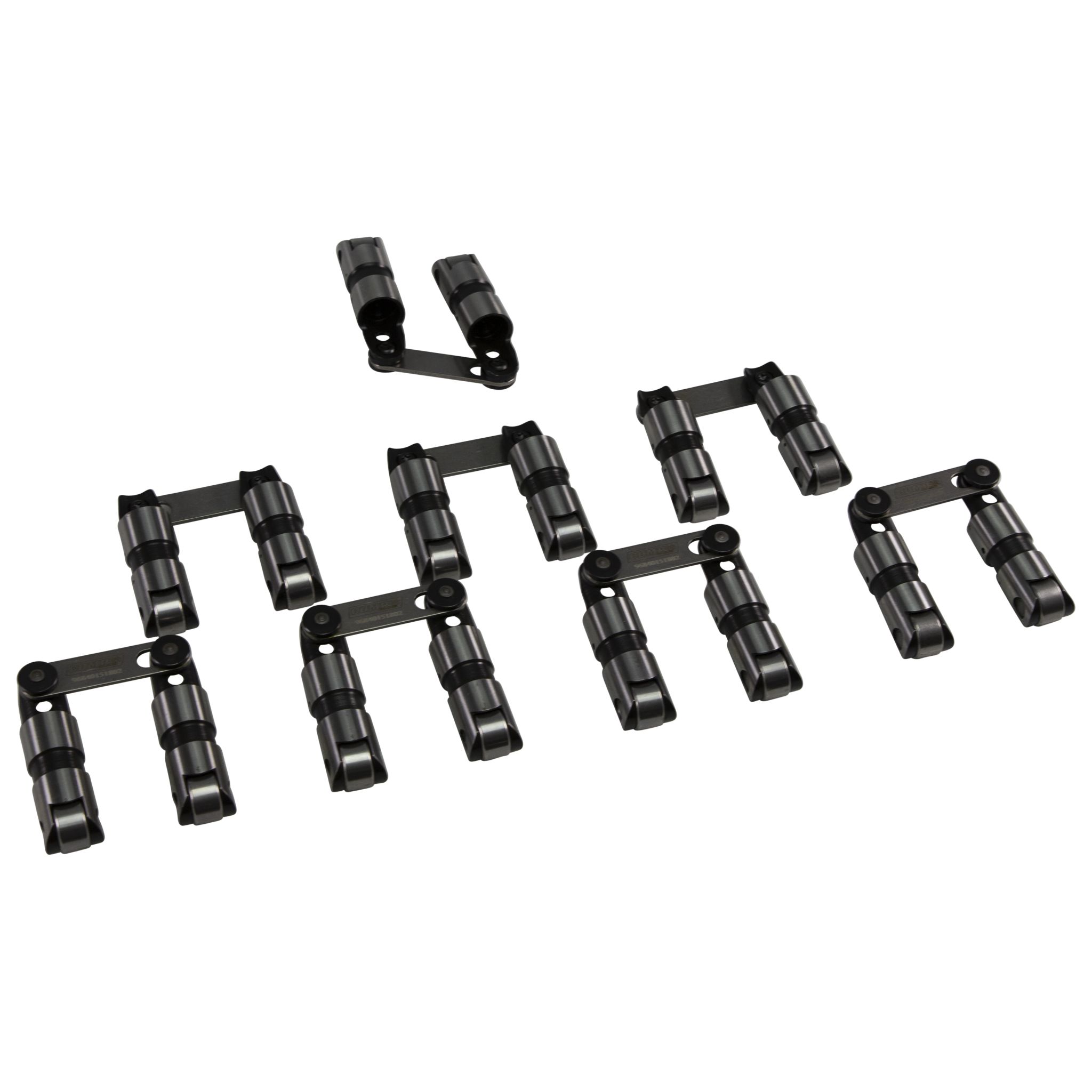 staked axles eliminate clips and provide robust axle retention. This permanent axle retention feature increases the stiffness of the lifter ears and helps prevent the ears from spreading. Sportsman Lifters are built from 8620 premium steel for increased strength and wear resistance and feature a captured link bar design. They utilize a tapered and slotted link bar tower for reduced weight and improved aesthetics. The lifters also feature a tall body to enable use in both standard and .300" tall lifter bores – the result is increased strength and less lifter bore wear.