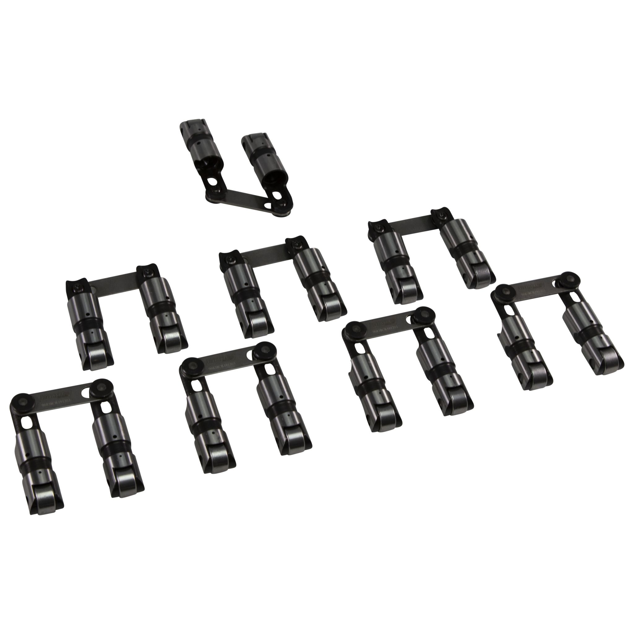 staked axles eliminate clips and provide robust axle retention. This permanent axle retention feature increases the stiffness of the lifter ears and helps prevent the ears from spreading. Sportsman Lifters are built from 8620 premium steel for increased strength and wear resistance and feature a captured link bar design. They utilize a tapered and slotted link bar tower for reduced weight and improved aesthetics. The lifters also feature a tall body to enable use in both standard and .300" tall lifter bores – the result is increased strength and less lifter bore wear.