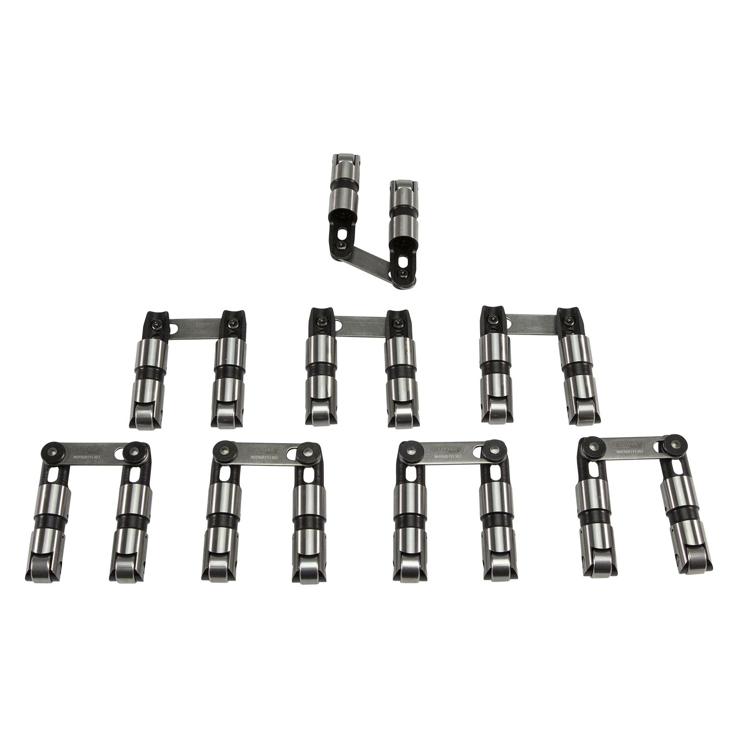 staked axles eliminate clips and provide robust axle retention. This permanent axle retention feature increases the stiffness of the lifter ears and helps prevent the ears from spreading. Sportsman Lifters are built from 8620 premium steel for increased strength and wear resistance and feature a captured link bar design. They utilize a tapered and slotted link bar tower for reduced weight and improved aesthetics. The lifters also feature a tall body to enable use in both standard and .300" tall lifter bores – the result is increased strength and less lifter bore wear.