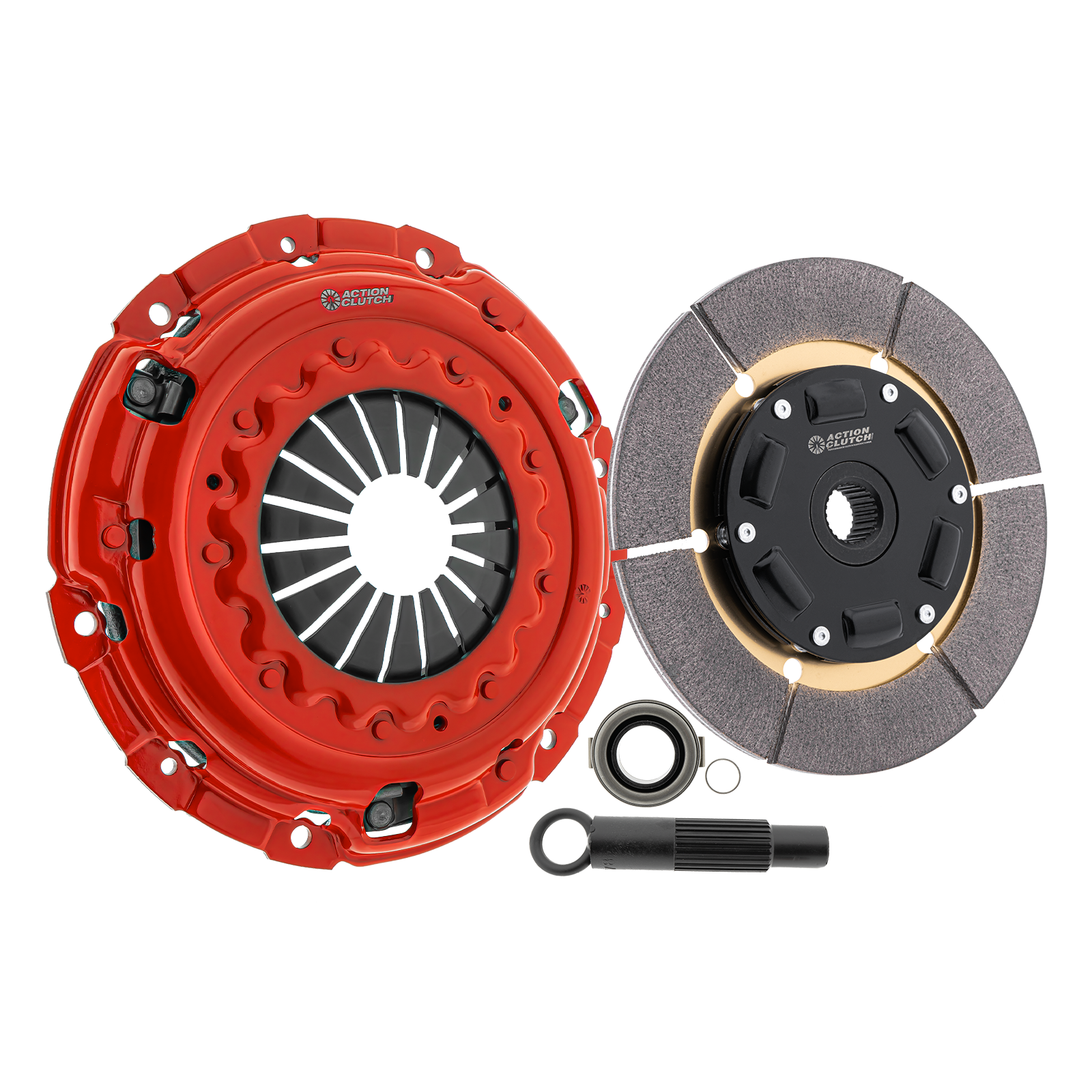 The Action Clutch Ironman Sprung (Street) kit is engineered specifically for dedicated high powered race vehicles, delivering durability and reliable performance. It features our American Sintered Iron friction material with our Dual clamp load heavy-duty pressure plate that ensures maximum torque holding capacity. The clutch engagement is aggressive with an on/off feel, without introducing clutch chatter. Some light engagement noise and gear rattle may be experienced during operation due to the nature of the product. No compromises are made in this kit, ensuring optimal performance even under extreme conditions. This kit is not intended for daily use and should only be used in race applications. At Action Clutch, safety is our top priority. We understand how catastrophic engine or transmission damage can be caused by springs popping out which is why we use our patented, fully enclosed spring retainers to keep your investment protected at all times. Every kit is quality checked by one of our experienced engineers (with over 60 years of collective experience) and signed off as safe before being released as a finished product. This gives you peace of mind knowing that your Action Clutch will perform consistently every time. NOTE: Purchasing the wrong type of clutch kit for your specific engine power output can result in premature clutch failure, damage to the transmission and void warranty eligibility. If you're unsure what kit is right for you, contact Action Clutch direct. 250% INCREASED HOLDING CAPACITY OVER FACTORY KIT SPECIFICALLY ENGINEERED FOR TRACK USE APPLICATIONS ONLY