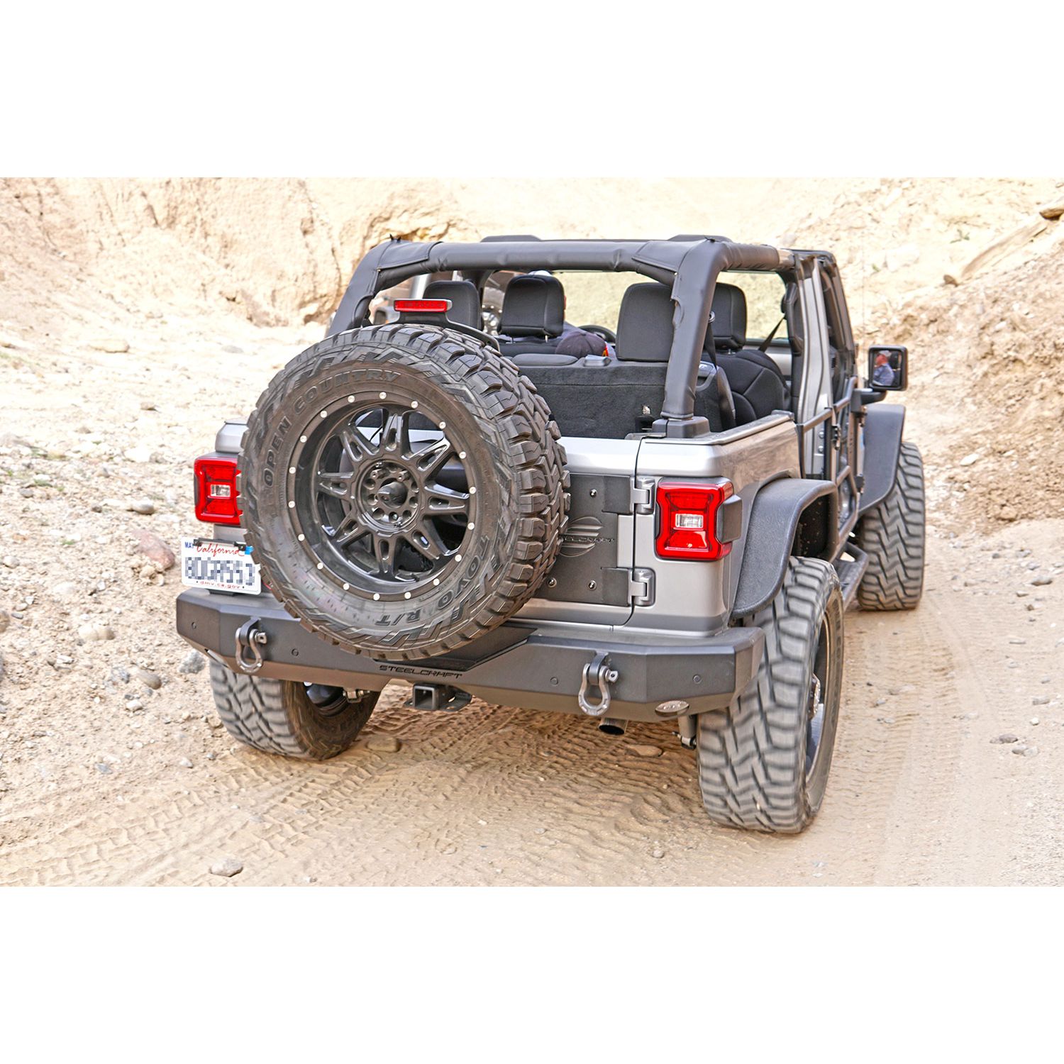 Steelcraft's Rear Bumper is the perfect complement to our front, ruggedness without losing form or function. Our Rear Bumper allows you to utilize the factory hitch and a spare tire up to 35". If you need to accommodate a larger size, we offer an optional Spare Tire Carrier of heavy duty design. Both Front and Rear Bumpers have fully welded eyelets, matte finish and are E-Coated and Powder Coated for maximum rust prevention. So when the time comes to explore beyond the pavement, Steelcraft Bumpers won't hold you back!