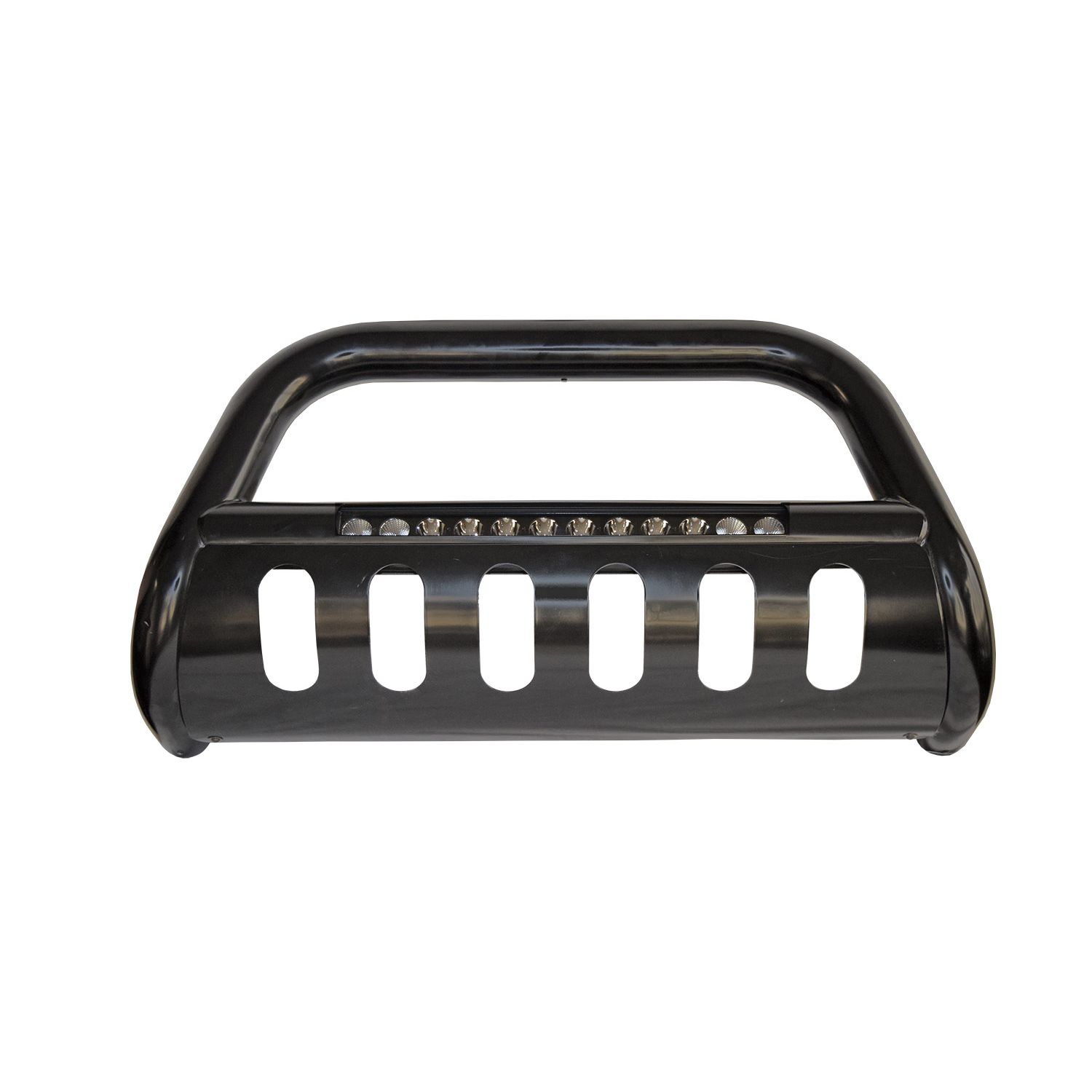 Steelcraft's LED Bull Bar features include an integrated 20" LED light bar that delivers 4050 lumen, heavy duty one piece construction, removable skid plate, no drill installation, and available in black semi-gloss only. 3 Year Warranty
