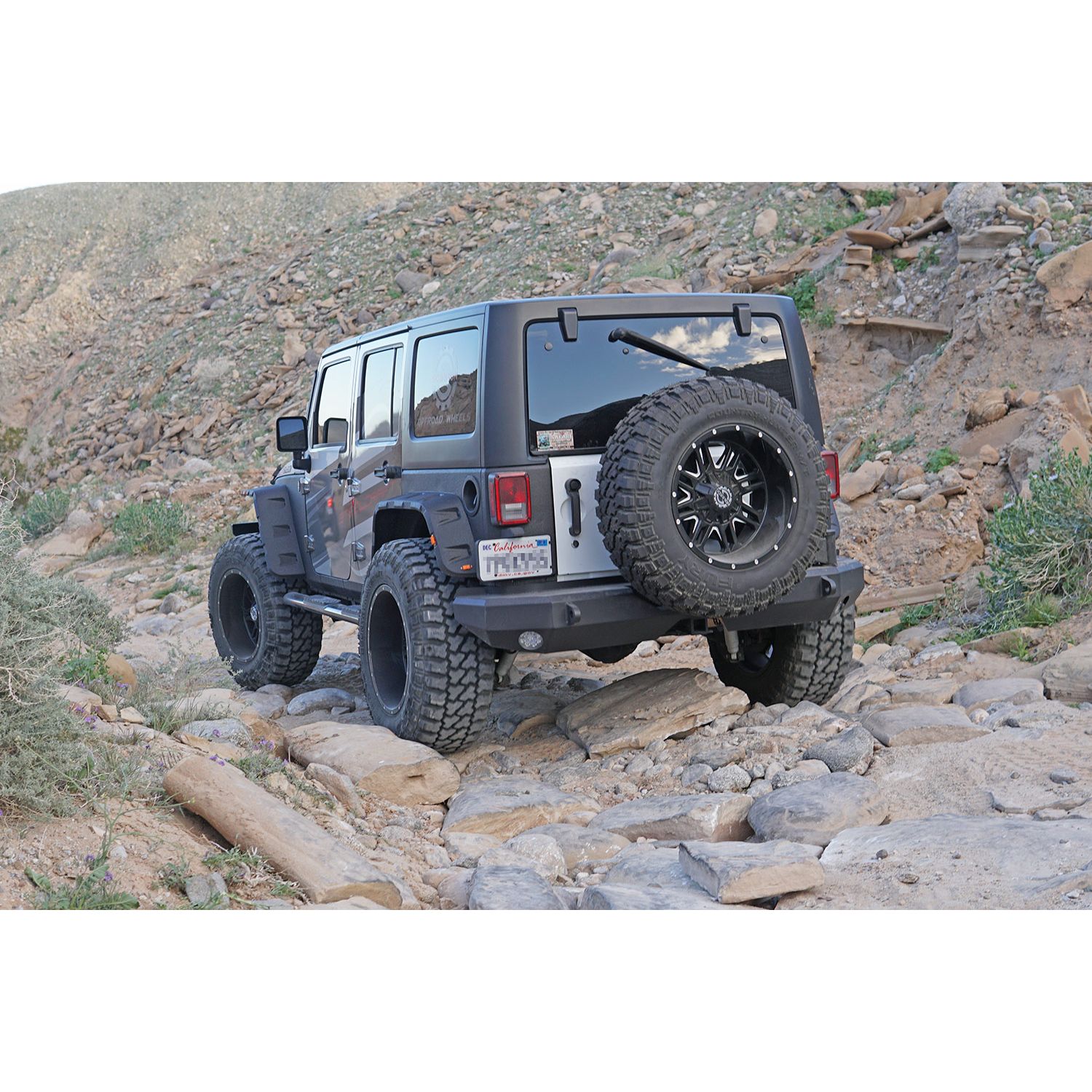 Steelcraft's Rear Bumper is the perfect complement to our front, ruggedness without losing form or function. Our Rear Bumper allows you to utilize the factory hitch and a spare tire up to 35". If you need to accommodate a larger size, we offer an optional Spare Tire Carrier of heavy duty design. Both Front and Rear Bumpers have fully welded eyelets, matte finish and are E-Coated and Powder Coated for maximum rust prevention. So when the time comes to explore beyond the pavement, Steelcraft Bumpers won't hold you back!
