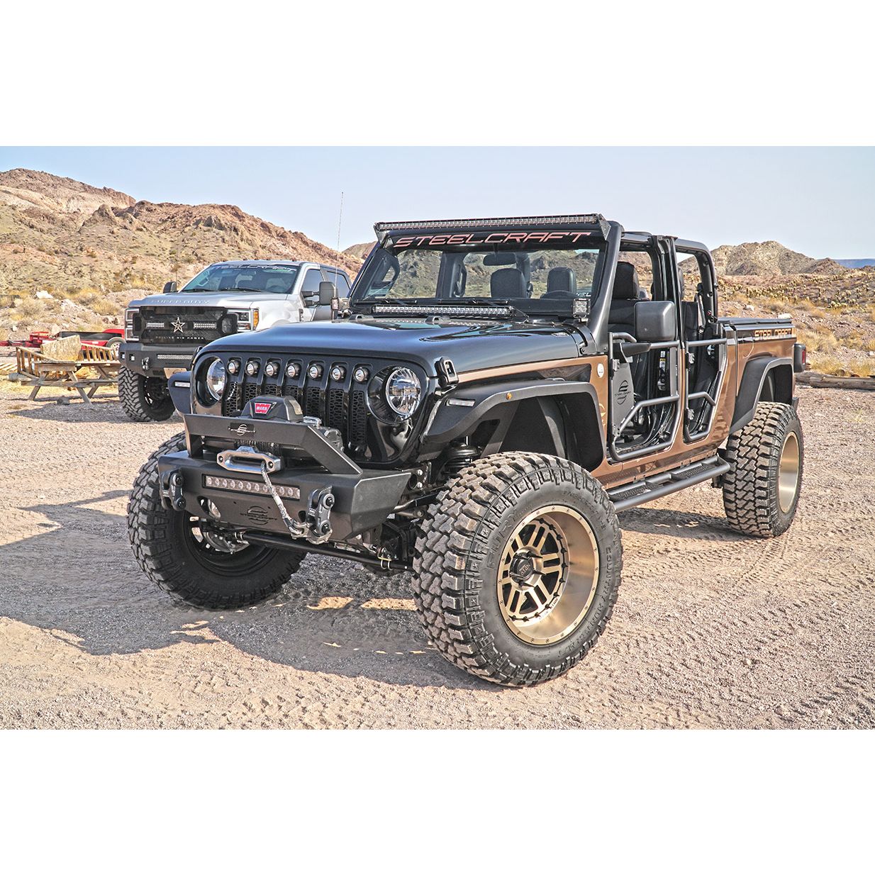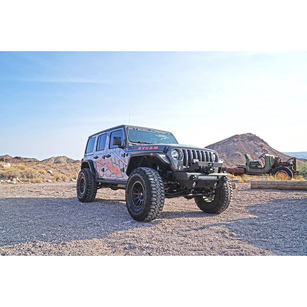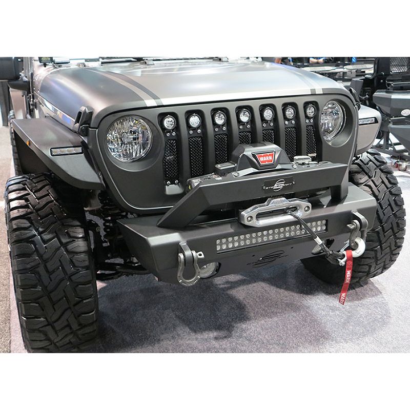 Steelcraft's Jeep Stubby Bumpers feature one piece design & are E-coated & powder coated for maximum protection against the elements. Winch, 20" LED light bar & shackle ready, plus retain your factory fog lights.