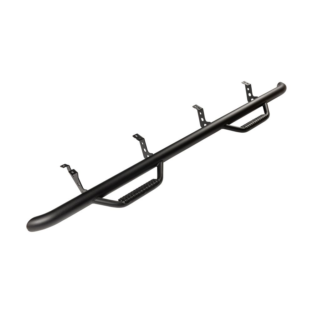Smittybilt Nerf Steps offer the perfect combination of style, durability, and functionality, making them ideal for lifted truck applications. Featuring a 4-step drop-down design with a 3" main tube and cleated step plates for enhanced stability, these heavy-duty steps protect your vehicle's rocker panels and support up to 445 pounds. Designed as a one-piece unit, they bolt directly to your vehicle's frame for a quick and easy installation, without the need for pre-assembly.