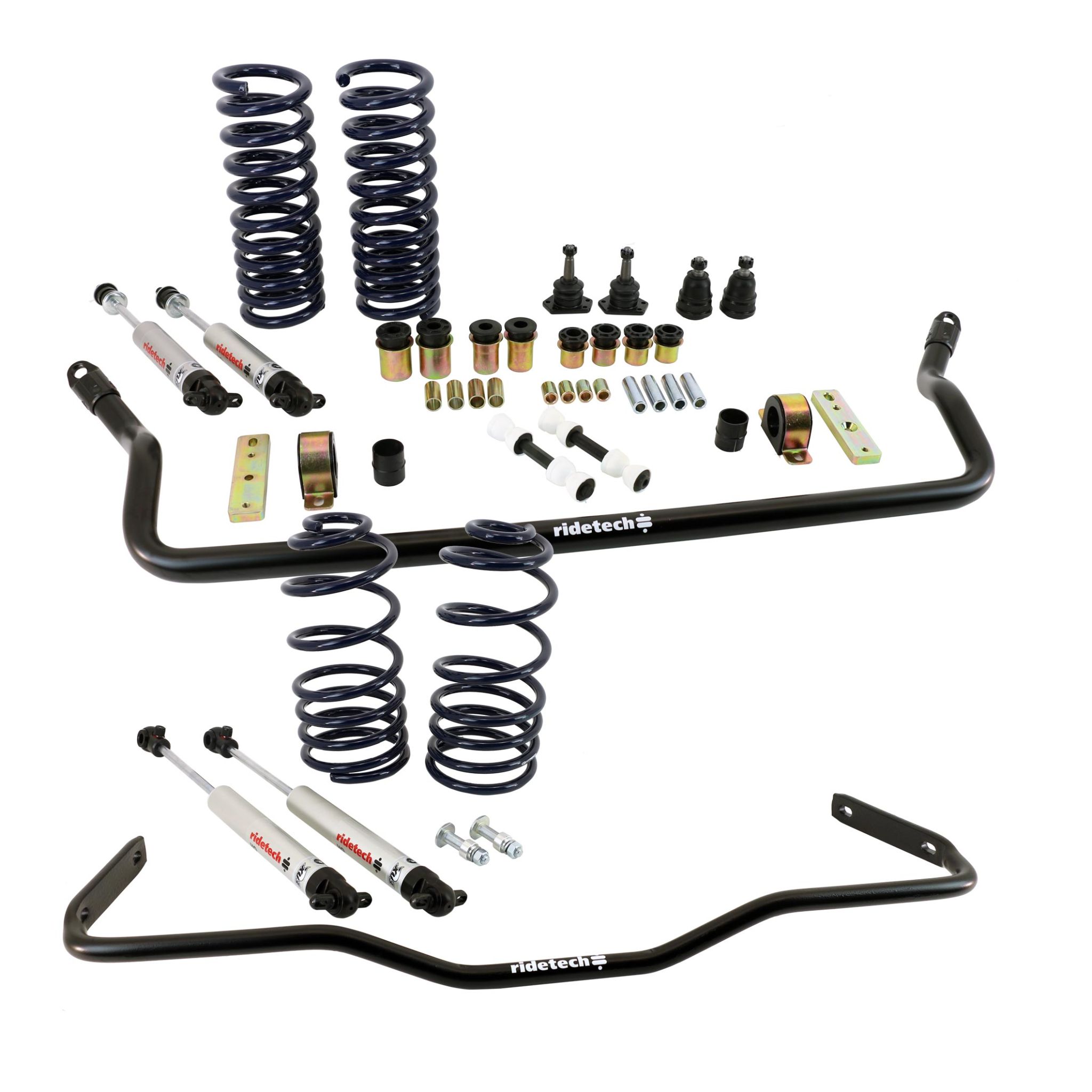 StreetGrip suspension system for 1968-1972 GM A-Body with big block. Includes front and rear dual rate coil springs, delrin control arm bushings, ball joints, front and rear sway bar and HQ shocks