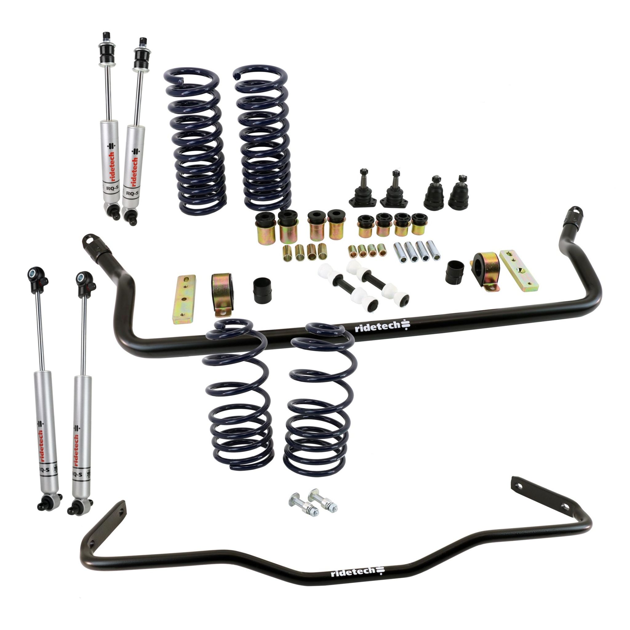 StreetGrip suspension system for 1968-1972 GM A-Body with small block. Includes front and rear dual rate coil springs, delrin control arm bushings, ball joints, front and rear sway bar and RQ-S shocks