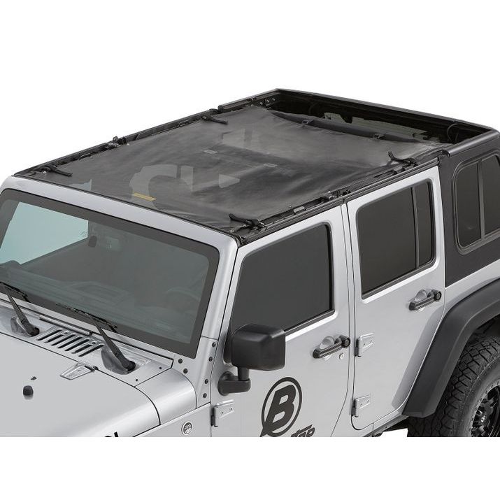 Bikini Tops are great, but if you want to put your soft top back on, the Bikini Top has to come off as well as the windshield channel. Sun Bikini eliminates all that because it doesn't interfere with your regular soft or hard top and doesn't require a separate, extra-cost windshield channel. It's like an interior sun shade you never have to remove, top up or top down. It offers filtered sunlight or even complete shade with the least amount of effort. Sun Bikinis strap into factory windshield header loops and center sport bar with J-Hook attachment to the upper door bars. Installation or removal is fast and easy. And the money saved in not needing a separate windshield channel can be put toward other Bestop accessories.