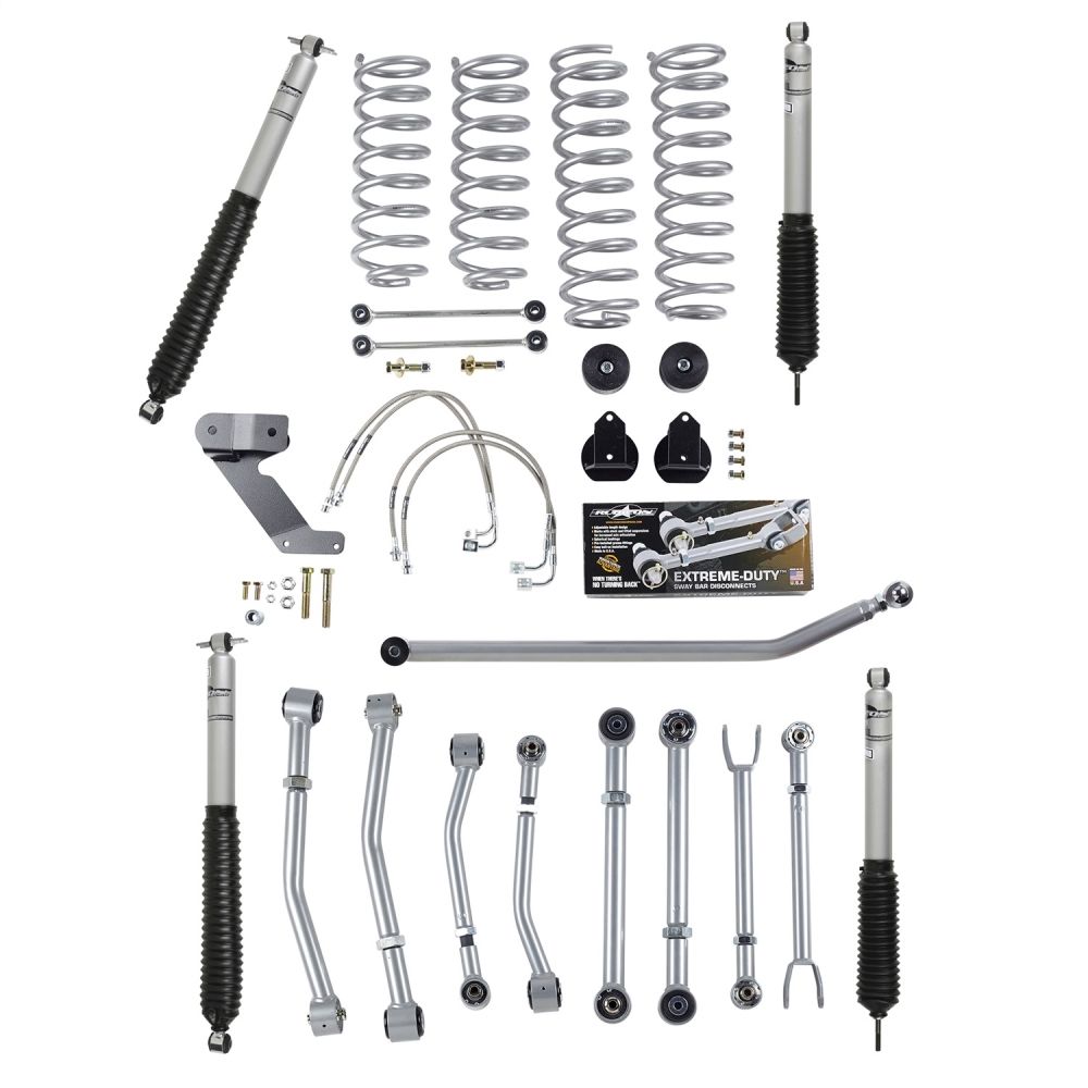 The Rubicon Express 3.5" Super-Flex Suspension System For The JK Owner Who Wants A More Affordable Price. The Lower Control Arms Of Your JKs Suspension Are Upgraded With Our Super-Flex Front Control Arms While The Stock Upper Control Arms Are Retained. The 3.5" Super-Flex System Will Improve The Trail Flexibility Of Your JK While Retaining A Comfortable Street Ride.