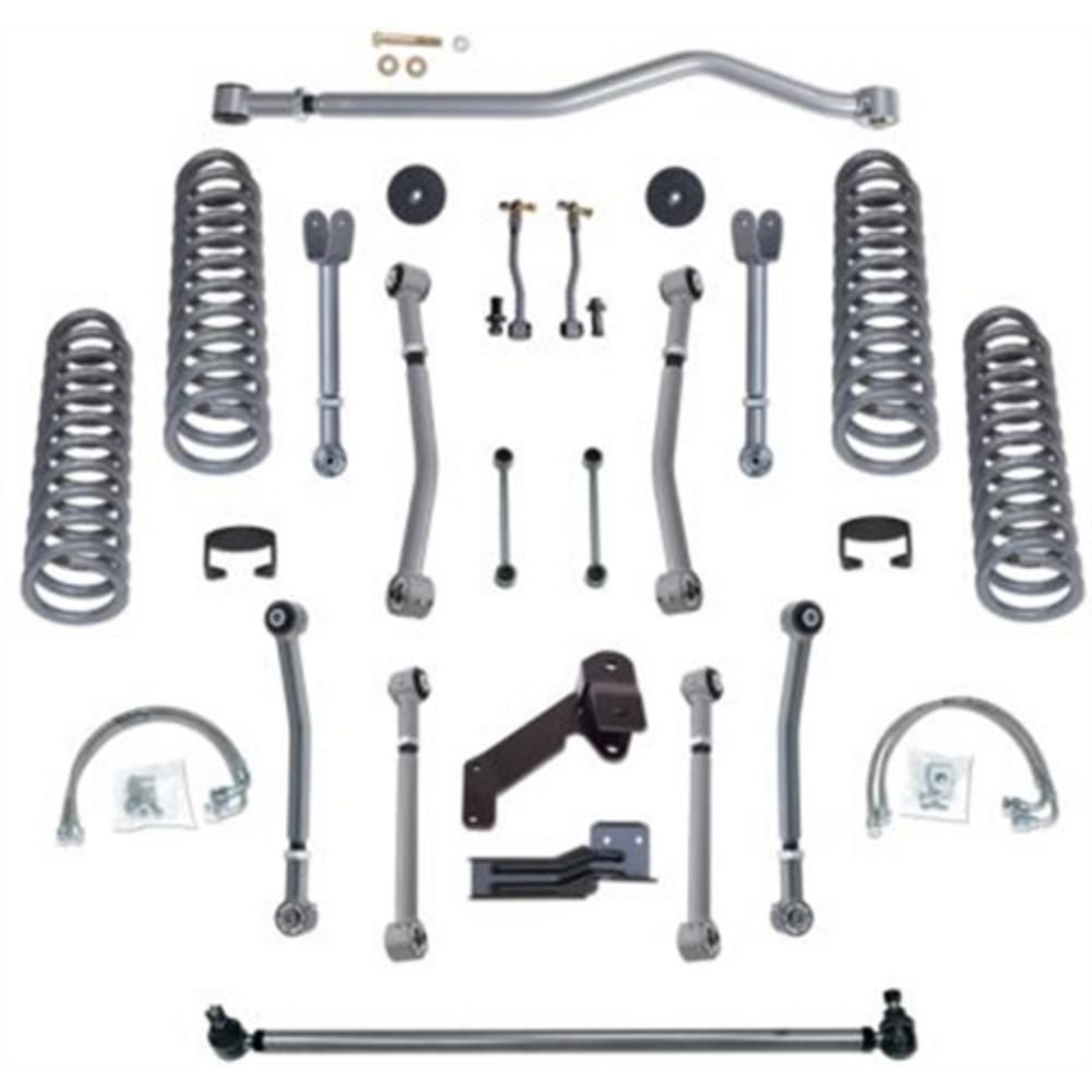 The Rubicon Express 4.5" Super-Flex Suspension System For The JK Owner Who Wants A More Affordable Price. The Lower Control Arms Of Your JKs Suspension Are Upgraded With Our Super-Flex Front Control Arms While The Stock Upper Control Arms Are Retained. The 4.5" Super-Flex System Will Improve The Trail Flexibility Of Your JK While Retaining A Comfortable Street Ride.