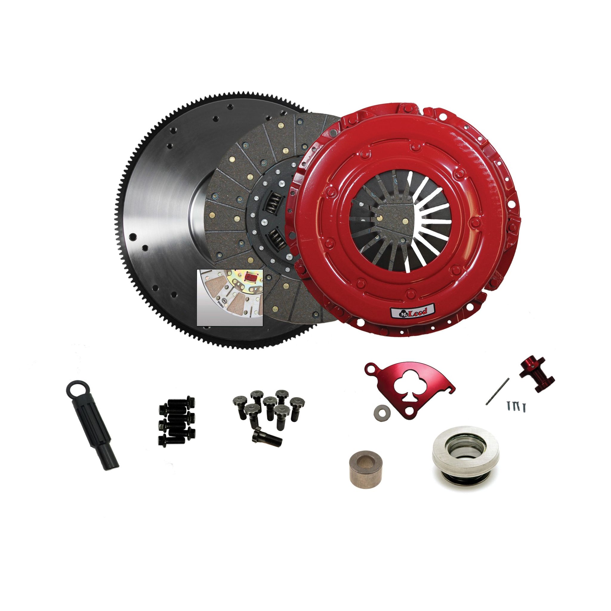 The Super Street Pro Clutch Pack is ideal for both the street and the track. We recommend it for cars up to 550 Hp (depending on part number) with moderate engine mods and street tires. The kit is SFI approved. Included is a high clamp load pressure plate, a dual performance organic and ceramic disc for smooth engagement and awesome holding power with billet steel flywheel. Our kits are complete with pressure plate, a dual performance organic/ceramic disc, throw out bearing (where applicable), pilot bushing (where applicable), crank and pressure plate bolts, alignment tool and billet steel flywheel. If you are looking for a street friendly yet track proven clutch, the McLeod Super Street Pro Clutch Pack is your best choice.