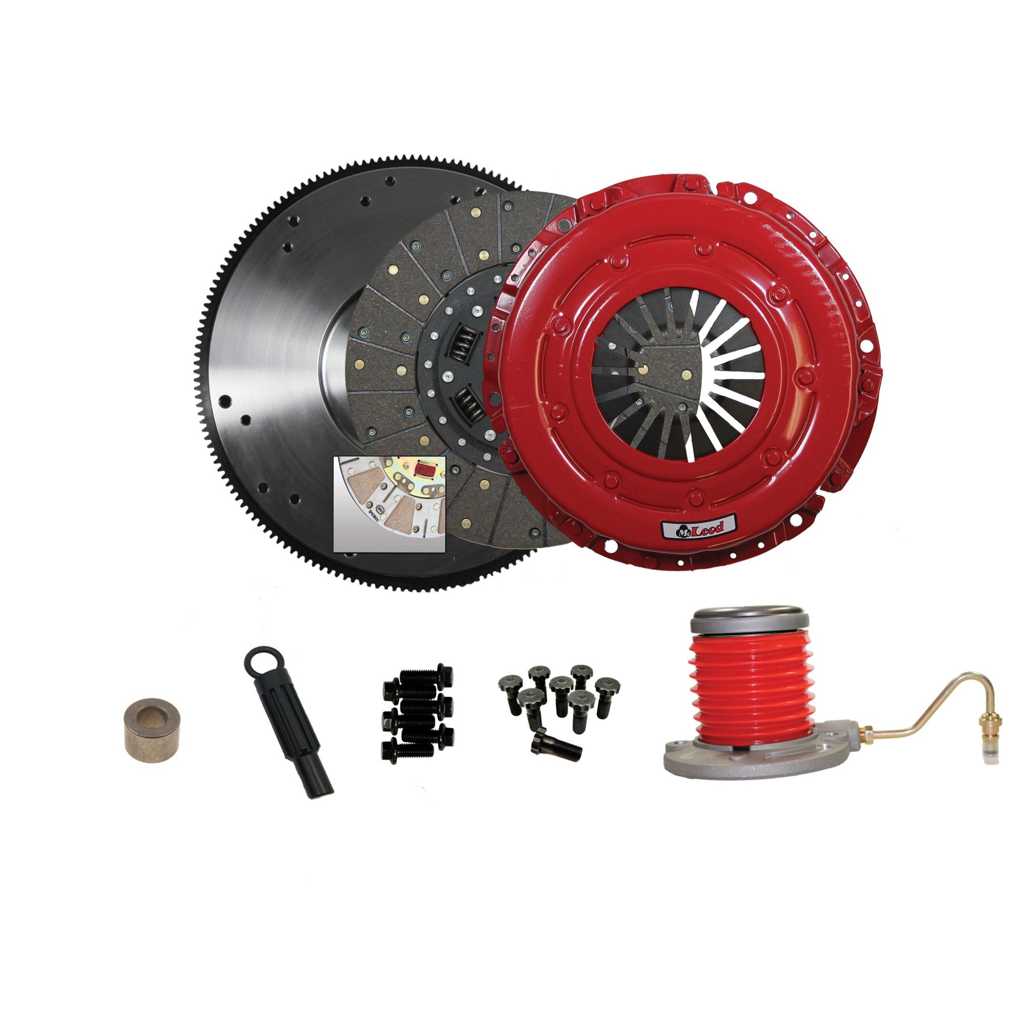 The Super Street Pro Clutch Pack is ideal for both the street and the track. We recommend it for cars up to 550 Hp (depending on part number) with moderate engine mods and street tires. The kit is SFI approved. Included is a high clamp load pressure plate, a dual performance organic and ceramic disc for smooth engagement and awesome holding power with billet steel flywheel. Our kits are complete with pressure plate, a dual performance organic/ceramic disc, throw out bearing (where applicable), pilot bushing (where applicable), crank and pressure plate bolts, alignment tool and billet steel flywheel. If you are looking for a street friendly yet track proven clutch, the McLeod Super Street Pro Clutch Pack is your best choice.