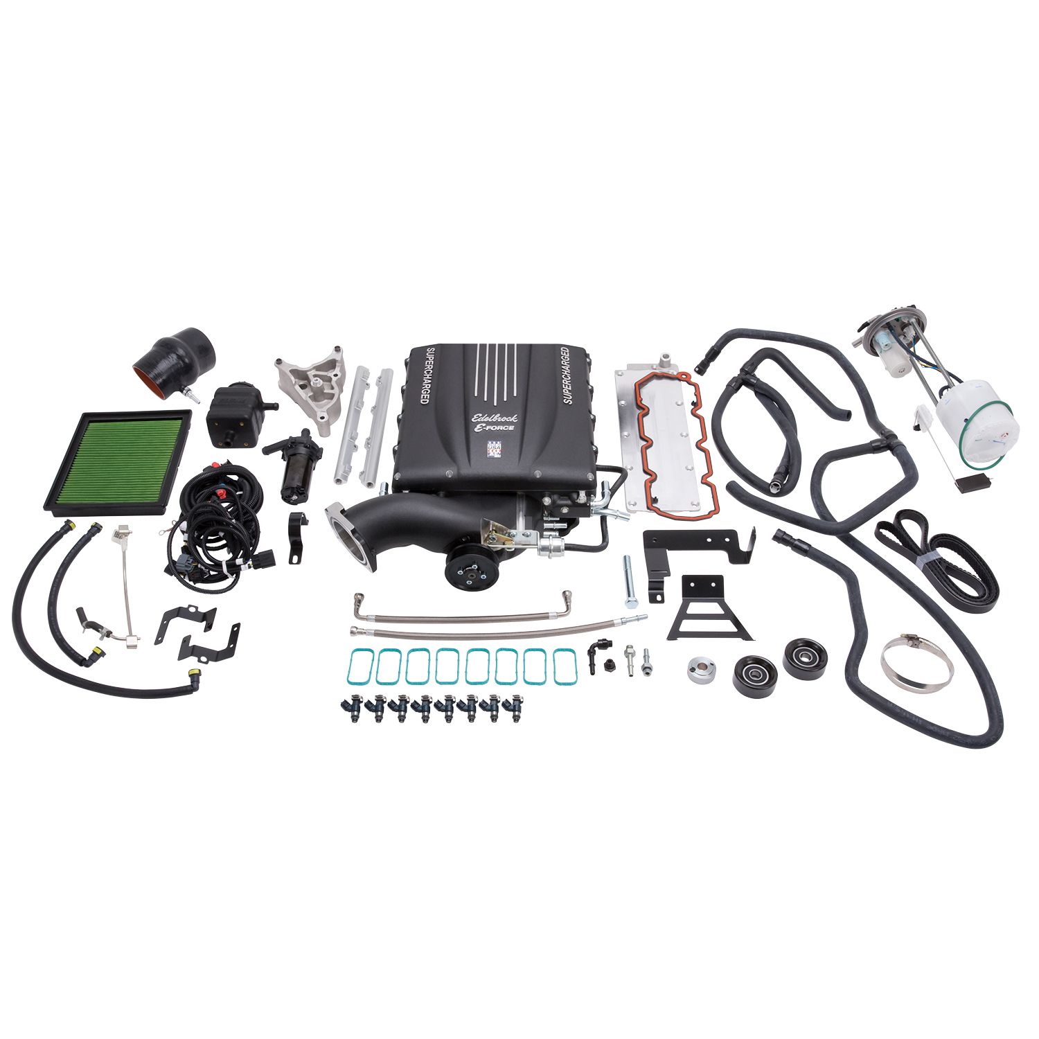 Edelbrock supercharger Stage 1 Street System part #15610 for 2011-13 Silverado and Sierra HD 2500 increases the performance of your 6.0L Gen IV engine to 399 horsepower and 395 ft-lbs of torque at the rear wheels