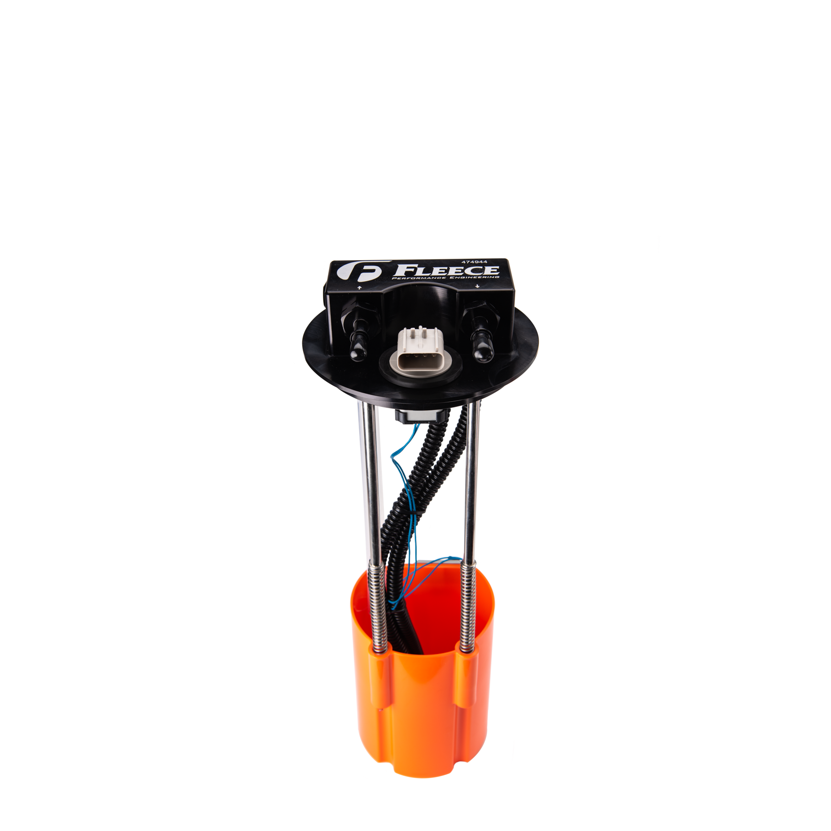 PROBLEM: If you are running an aftermarket pump that is mounted external of the fuel tank, you will need to install a draw straw or drill your fuel tank to accommodate a sump. Each of these has some pretty significant drawbacks including the 1/4 tank issues that result in cavitation of the pump when you draw air into the fuel system. SOLUTION: SureFlo is designed to work with externally mounted aftermarket lift pumps and fits directly into your stock sending unit location. It features factory style quick disconnects to adapt your stock fuel lines at the tank, giving you the cleanest installation available and requiring no cutting or drilling of the tank. SureFlo works by drawing fuel from, and returning fuel to, the bucket assembly at the base of the unit. This ensures you are always drawing fuel into your pump and not drawing air into the fuel system as well as eliminates the dreaded 1/4 tank problems. The SureFlo bucket also incorporates one way check valves to allow fuel to easily flow in, even at the lowest of fuel levels. SureFlo sending units are a great alternative for trucks originally equipped without an in tank pump needing to repair a malfunctioning level sender or if you are simply looking to run your own custom fuel lines directly to the tank. SureFlo is not recommended for use with aftermarket lift pumps that exceed a 200 GPH rating. SureFlo features include: OEM style fitment that requires no tank cutting or drilling New fuel level electronics and fuel float Heavy duty billet aluminum cap Universal -8 AN ports for professional plumbing of a custom fuel setup New O-ring or flange seal 8 to 3/4'-16 straight male fitting w/ O-ring