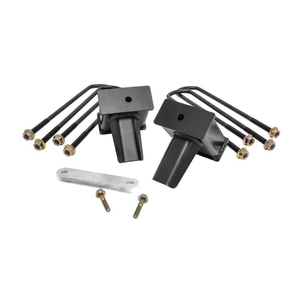 ReadyLIFT OEM-style rear block kits are now available for 2017-2022 Ford Super Duty model specific applications. These 5.0" fabricated steel Flat Rear Block Kits include two (2) rear blocks, billet drive line spacer, four (4) long e-coated U-bolts and eight (8) nuts and washers. Based on OEM designs and never made out of light weight extrusions, our 5" 2017-2022 Ford Super Duty Tapered Rear Blocks have Integrated OEM style bump stops. ReadyLIFT Block Kits will put a slight rake back in your truck for hauling or towing and are designed to work with your ReadyLIFT Suspension Leveling Kit. In fact, these blocks are the ideal Tow Package upgrade for not only for stock height vehicles but lifted or leveled trucks too! Like all ReadyLIFT products these block kits come with our Limited Lifetime Warranty. NOTE: 66-2751 5" block is for use on 2017-2022 Ford F250 Super Duty 4WD trucks with 2-piece drive shaft. Lift height will vary depending on what factory block your truck has. NOTE: The lift blocks in this kit are not designed to work with aftermarket or factory add-on air spring/load leveling kits that attach to the bump stop tangs. Use of this type of air bag system will void all block warranties and can cause failure of the block bump stop tang.