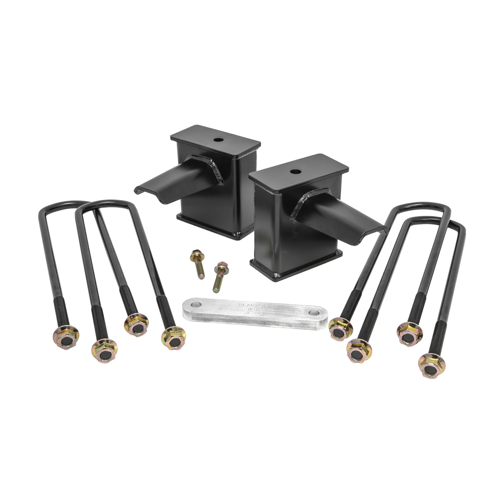 ReadyLIFT OEM-style rear block kits are now available for 2017-2023 Ford Super Duty model specific applications. These 6.0" fabricated steel Flat Rear Block Kits include two (2) rear blocks, billet drive line spacer, four (4) long e-coated u-bolts and eight (8) nuts and washers. Based on OEM designs and never made out of light weight extrusions, our 6" 2017-2023 Ford Super Duty Tapered Rear Blocks have Integrated OEM style bump stops. ReadyLIFT Block Kits will put a slight rake back in your truck for hauling or towing and are designed to work with your ReadyLIFT Suspension Leveling Kit. In fact, these blocks are the ideal Tow Package upgrade for not only for stock height vehicles but lifted or leveled trucks too! Like all ReadyLIFT products these block kits come with our Limited Lifetime Warranty. NOTE: 66-2761 6" block is for use on 2017-2023 Ford F250 Super Duty 4WD trucks with 2-piece drive shaft. Lift height will vary depending on what factory block your truck has. NOTE: Not for use on 2019-2023 F350. NOTE: The lift blocks in this kit are not designed to work with aftermarket or factory add-on air spring/load leveling kits that attach to the bump stop tangs. Use of this type of air bag system will void all block warranties and can cause failure of the block bump stop tang.