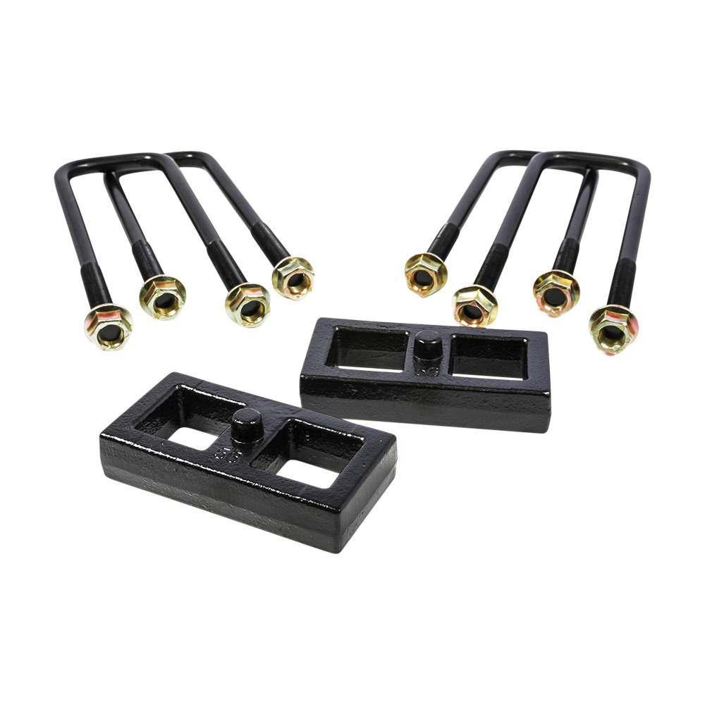 ReadyLIFT's Ford Ranger OEM style 1" Rear Block Kits are now available for 2019-2023 Ford Ranger 4WD applications. 26-2910 Rear Block Kit includes two (2)1" Tall Rear Blocks, four (4) E-Coated U-Bolts, eight (8) Nuts and Washers and will safely lift the rear of your 2019-2023 Ford Ranger Truck. Create more rake with the addition of this 1" tall rear block kit. Ideal for when more rear lift is required for towing or hauling. Based on OEM designs and never made out of lightweight extrusions our 1" Rear Lift Blocks are made to fit and have Integrated OEM Style Bump Stop Landings and cast in center pins. ReadyLIFT Block Kits will put a slight rake back in your truck for hauling or towing and are designed to work in concert with your ReadyLIFT Suspension Leveling Kit. In fact, these blocks are the ideal Tow Package upgrade for not only for stock height vehicles but lifted or leveled trucks too! Like all ReadyLIFT products, these block kits come with our Limited Lifetime Warranty. With this new Rear Lift Block, you will never have to illegally stack rear blocks again! Installation time about 1.8 hours