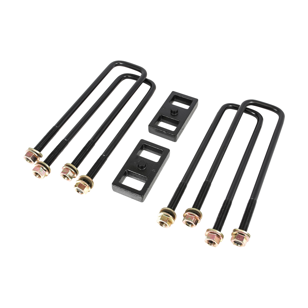 ReadyLIFT OEM-style rear block kits are available for the 1988-1998 2WD & 4WD 6-lug and 2000-2010 GM 2500HD/3500HD single rear wheel pickups. These Rear Block Kits include two (2) 1" Rear Blocks, four (4) E-Coated U-Bolts, eight (8) Nuts and Washers and will safely lift the rear of your 1988-1998 2WD & 4WD 6-lug and 2000-10 GM HD trucks 1". Based on OEM designs and never made out of light-weight extrusions, our 1" GM Blocks are made from cast iron just like the factory blocks, ensuring maximum strength and reliability. ReadyLIFT Block Kits will put a slight rake back in your truck for hauling or towing and are designed to work with your ReadyLIFT Suspension Leveling Kit. Like all ReadyLIFT products, these block kits come with our Lifetime Warranty. Note: Single Rear Wheel Only (will not fit Dually)