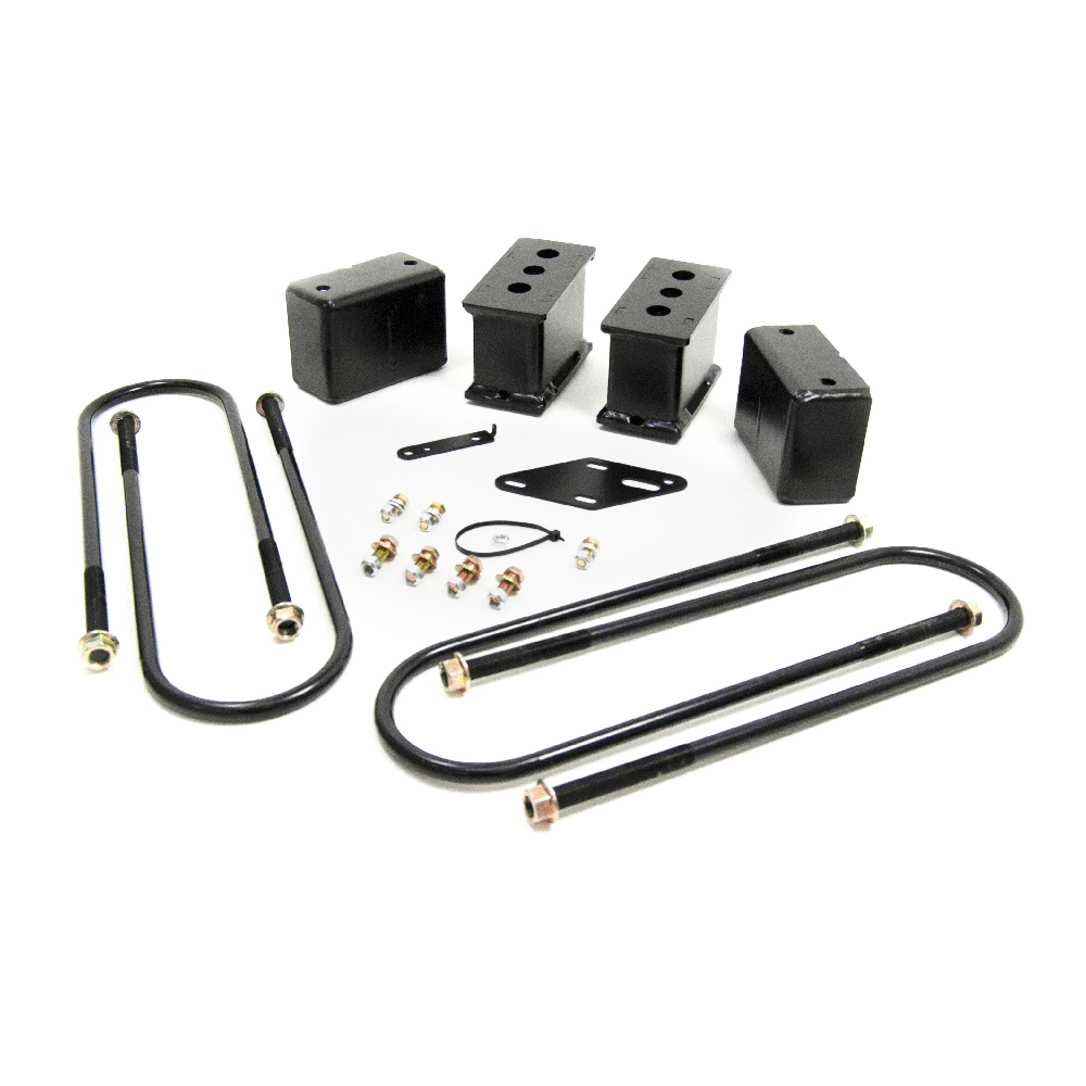 ReadyLIFT OEM-style rear block kit available for 2019-2023 Ram 3500 HD. This Rear Block Kit lifts the rear of the truck 4-inches to achieve a rear rake for heavy loads.