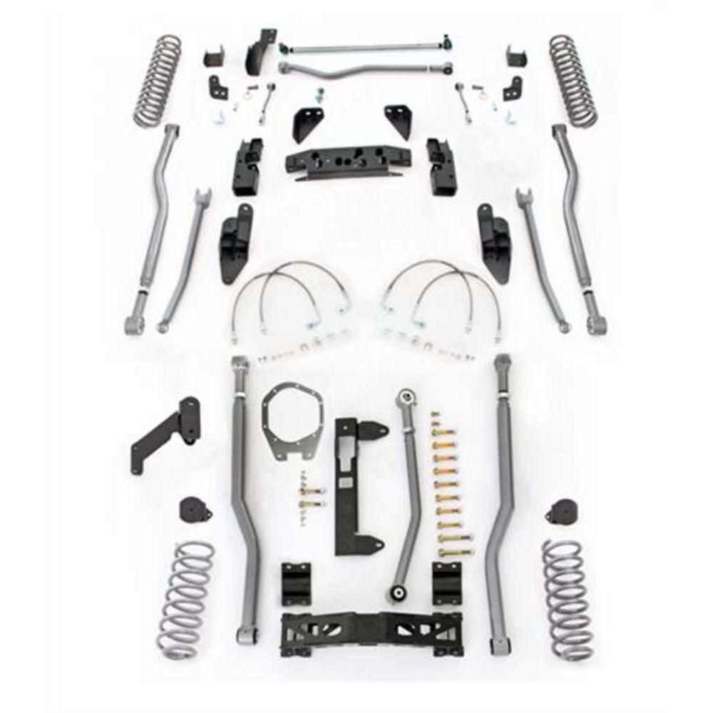 The Latest Addition To The Rubicon Express JK Suspension Offering Is Our Complete 4-Link Front/Rear 3-Link Extreme-Duty Long Arm System. These High Performance Suspension Systems Deliver Both Performance And Control That Are Unmatched By Any Other Long Arm Kit On The Market. They Feature Adjustable Chromoly Upper And Lower Control Arms That Will Stand Up To Anything You Can Drive Over. w. Pt-Meg Super-Ride Bushings And Super-Flex Joints They Are Sure To Provide Superior Handing While Not Limiting Articulation. The Kits Full Width Heavy-Duty Transmission Crossmember Allows For More Durability And Frame Rigidity Then The Competition. This Also Allows For Installation That Is Much Easier That Competitor'S Kits Eliminating The Need For Welding. An Optional Robust Belly Pan, And CNC Machine Steering Knuckle Provide Outstanding Upgrades. Systems Can Be Ordered In 3.5", 4.5" And 5.5" Lift Heights w. Optional High Performance Monotube Shocks. Like All Rubicon Express Systems, They Are Made In The Usa And Backed By The Rubicon Express Advantage Lifetime Warranty.
