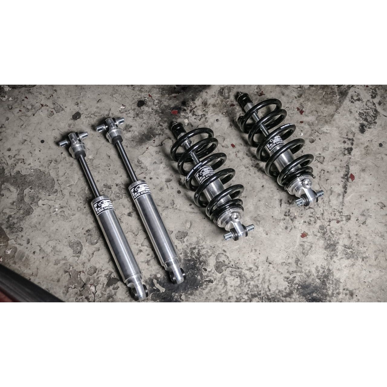 Suspension Package, Road Comp, GM, 70-81 F-Body, Front coilovers with rear shocks, Small Block, Kit. Includes 2 front coilovers with 450 lb springs, 2 TrueLine rear, adjustable shocks with hardware. Bolt on. Front and Rear. Made in USA