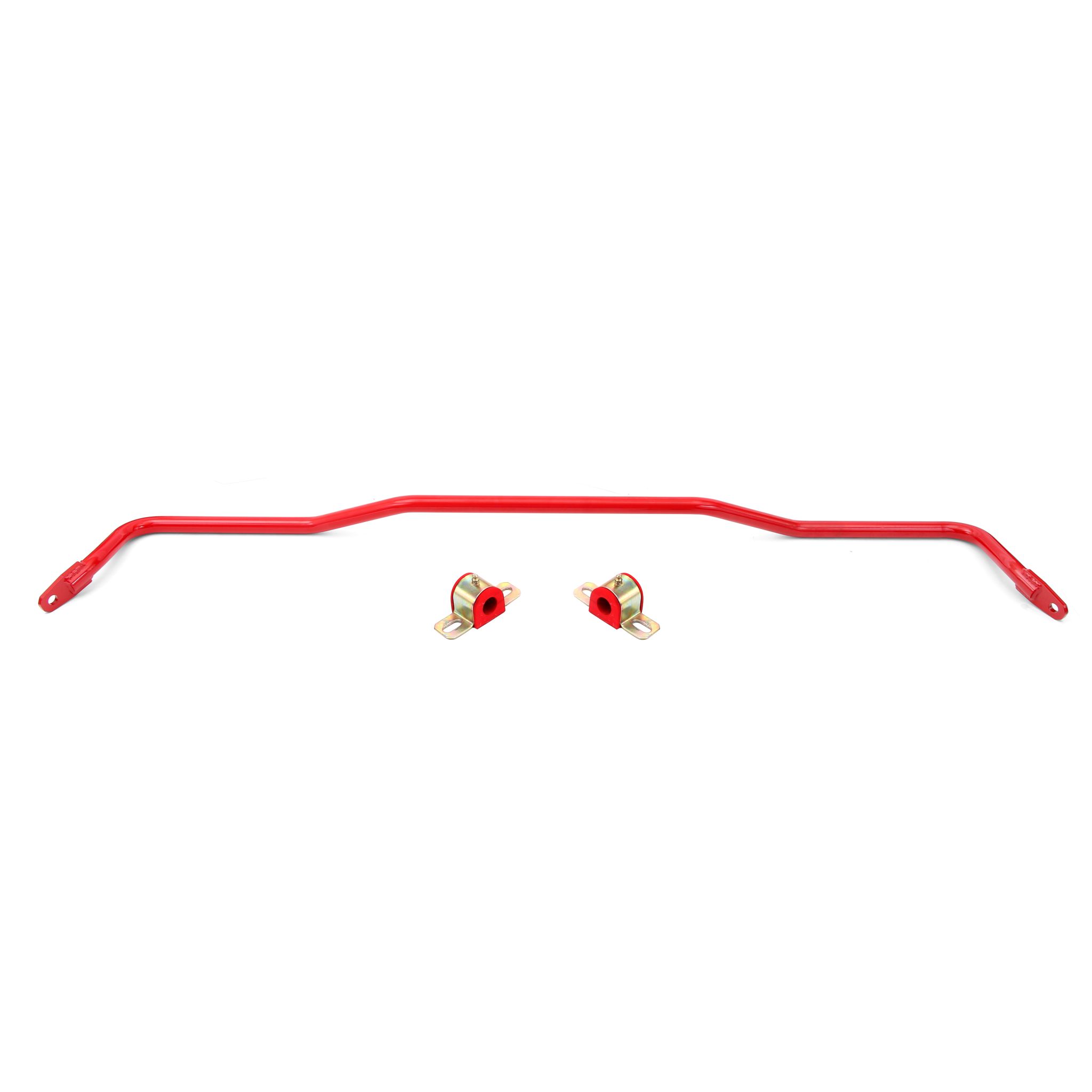 The two primary functions of sway bars are to control body roll and to determine the understeer or oversteer behavior of a vehicle. Stock sway bars have low torsional spring rates because they are manufactured from small diameter bar stock or tubing. BMR Suspensions SB762 rear sway bar kit was designed by factoring in the vehicle weight, application, motion ratio, coil spring rate, and adjustability requirements. Manufactured from heavy-duty 22mm DOM steel tubing, the SB762 is cold formed to better resist torsional fatigue and retain its "memory" far longer than the hot-formed bars used by many competitors. The sway bar is CNC-formed for exact manufacturing tolerances and repeatable high quality. The SB762 attaches to your S550 Mustang with polyurethane bushings, reducing the deflection from the stock rubber bushings. These bushings are molded from 88-durometer, low-deflection, polyurethane, and are internally fluted to keep grease in the bushing. BMR Suspension designed the SB762 sway bar kit for street performance, autocross, and road race applications. The SB762 rear sway bar gives you a 29-41% increase in rate over the stock bar. The rate increase improves the handling characteristics of your S550 Mustang so you can drive harder through corners with minimal body roll. The hollow design allows for loads of strength in the lightest package possible. This means increased performance with no sacrifices. The SB762 attaches to your Mustang with 88-durometer polyurethane bushings, reducing the deflection from the stock rubber bushings, allowing for more sway bar control, which equals better handling. When performance is a must, rely on BMR Suspension! BMR Suspensions SB762 sway bar kit is available in black hammertone and red powdercoat for long-lasting good looks. Installation time is about 1-2 hours. Proudly made in the U.S.A.!