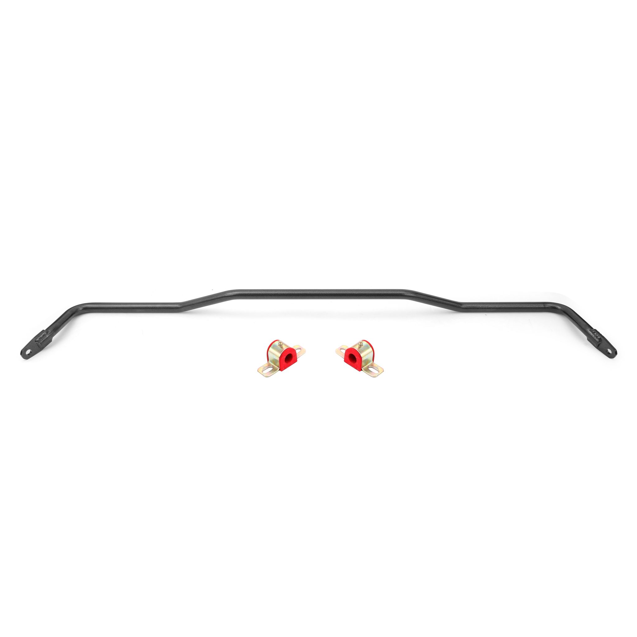 The two primary functions of sway bars are to control body roll and to determine the understeer or oversteer behavior of a vehicle. Stock sway bars have low torsional spring rates because they are manufactured from small diameter bar stock or tubing. BMR Suspensions SB762 rear sway bar kit was designed by factoring in the vehicle weight, application, motion ratio, coil spring rate, and adjustability requirements. Manufactured from heavy-duty 22mm DOM steel tubing, the SB762 is cold formed to better resist torsional fatigue and retain its "memory" far longer than the hot-formed bars used by many competitors. The sway bar is CNC-formed for exact manufacturing tolerances and repeatable high quality. The SB762 attaches to your S550 Mustang with polyurethane bushings, reducing the deflection from the stock rubber bushings. These bushings are molded from 88-durometer, low-deflection, polyurethane, and are internally fluted to keep grease in the bushing. BMR Suspension designed the SB762 sway bar kit for street performance, autocross, and road race applications. The SB762 rear sway bar gives you a 29-41% increase in rate over the stock bar. The rate increase improves the handling characteristics of your S550 Mustang so you can drive harder through corners with minimal body roll. The hollow design allows for loads of strength in the lightest package possible. This means increased performance with no sacrifices. The SB762 attaches to your Mustang with 88-durometer polyurethane bushings, reducing the deflection from the stock rubber bushings, allowing for more sway bar control, which equals better handling. When performance is a must, rely on BMR Suspension! BMR Suspensions SB762 sway bar kit is available in black hammertone and red powdercoat for long-lasting good looks. Installation time is about 1-2 hours. Proudly made in the U.S.A.!