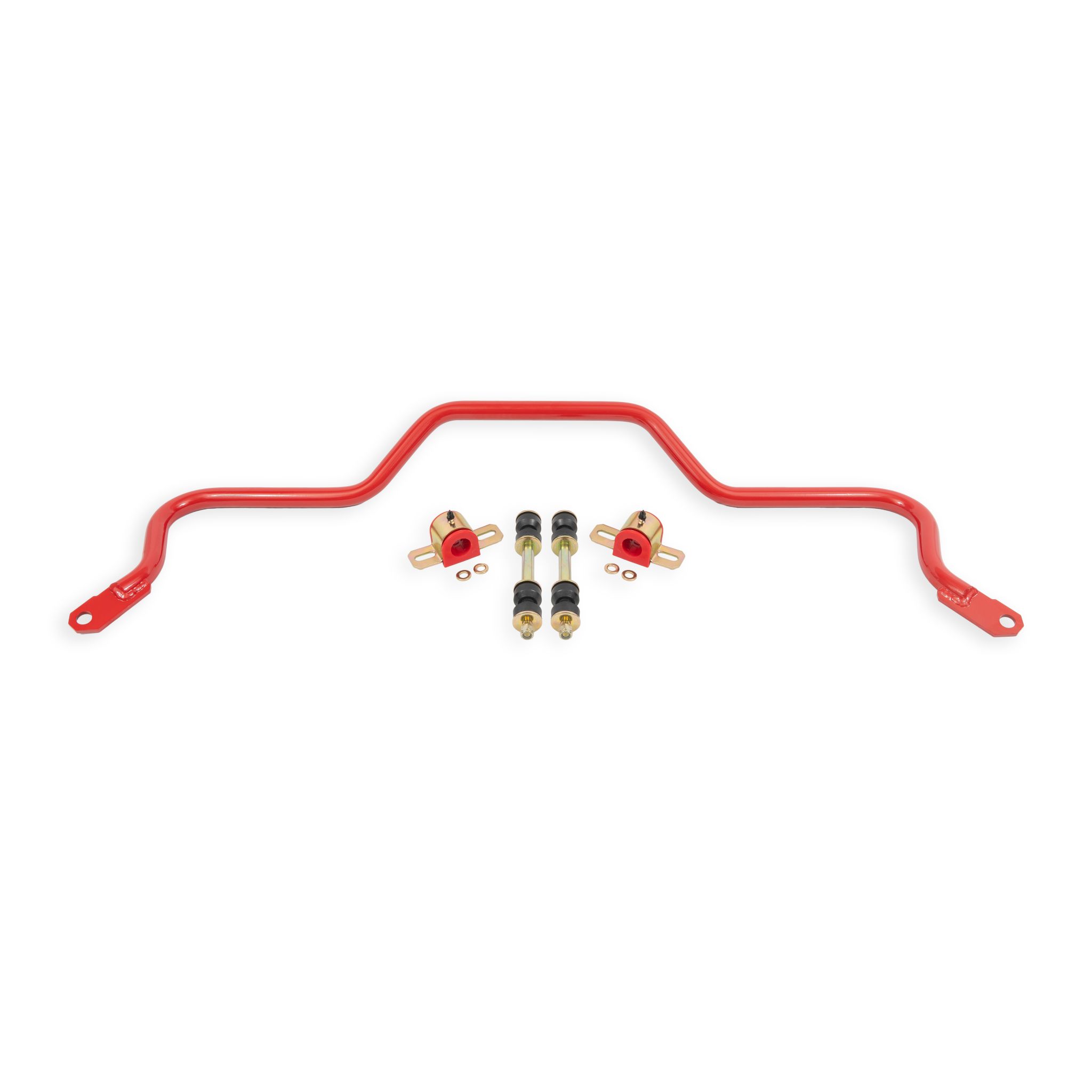The two primary functions of sway bars are to control body roll and to determine the understeer or oversteer behavior of a vehicle. Stock sway bars have low torsional spring rates because they are manufactured from small diameter bar stock or tubing. BMR Suspensions SB003 rear sway bar was designed by factoring in the vehicle weight, application, motion ratio, coil spring rate, and adjustability requirements. Manufactured from heavy-wall 25mm DOM tubing, the SB003 is cold formed to better resist torsional fatigue and retain its "memory" far longer than the hot-formed bars used by many competitors. The sway bar is CNC-formed for exact manufacturing tolerances and repeatable high quality. The SB003 attaches to your Camaro with 88-durometer polyurethane bushings, reducing the deflection from the stock rubber bushings. These bushings are molded from 88-durometer, low-deflection, polyurethane, and are internally fluted to keeps grease in the bushing. The fabricated laser cut, TIG-welded steel sway bar end links are reinforced to minimize deflection. BMR Suspension designed the SB003 sway bar for street performance, drag race, autocross, and road race applications. The SB003 gives you a 149% increase in rate over the stock bar (depending on year and model). These rate increases allow you to fine-tune the handling characteristics of the suspension so you can drive harder through corners with minimal body roll. The hollow design allows for loads of strength without adding a lot of weight. This allows for more sway bar control, which equals better handling. When performance is a must, rely on BMR Suspension! BMR Suspensions SB003 sway bars are available in black hammertone and red powdercoat for long-lasting good looks. Installation time is about 1-2 hours. Proudly made in the U.S.A.! All kits come with polyurethane mounting bushings and endlink kits.