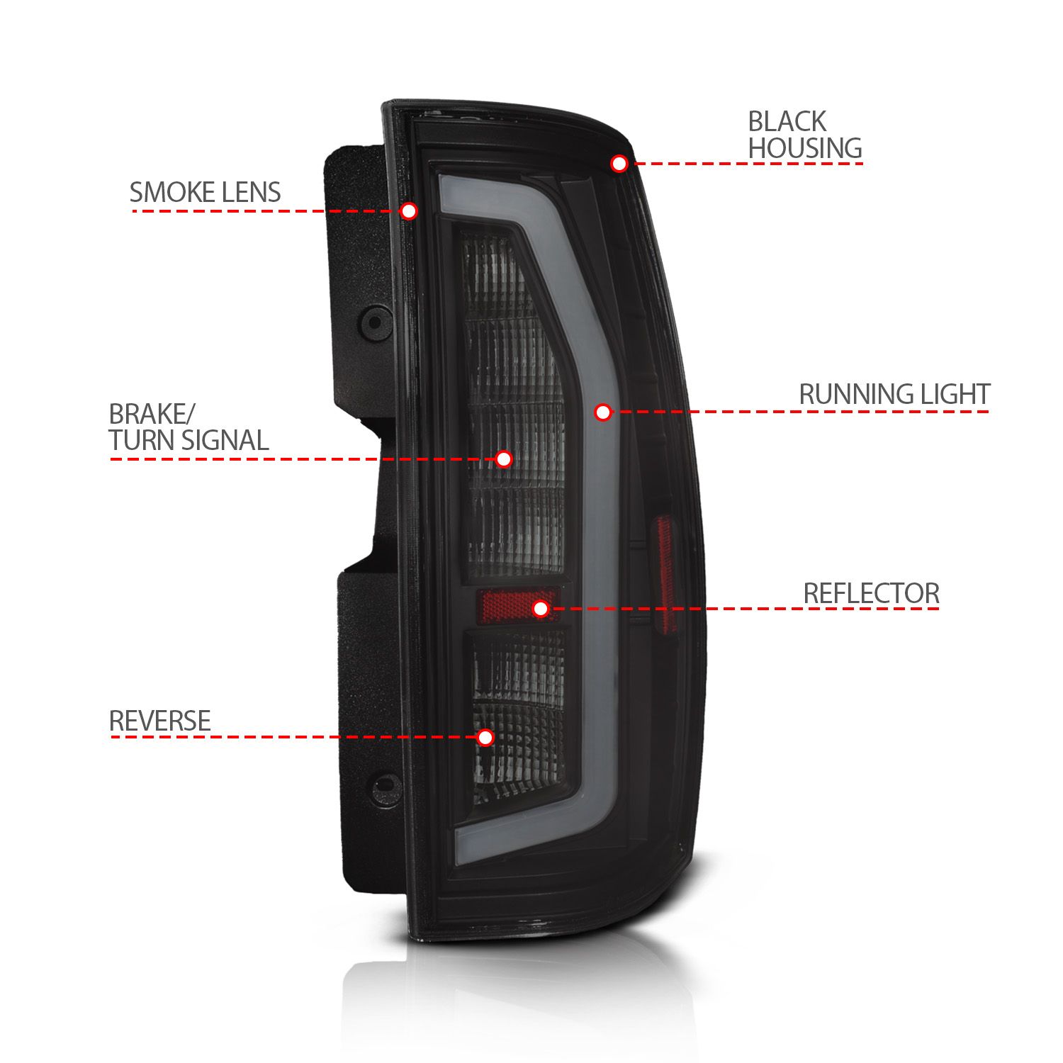 Tail Light Assembly, Full LED, LED Plank Style, Smoke Lens, Black Housing, Pair Guaranteed To Improve Your Vehicles Appearance. Rigorously Tested For Fit And Function. Simple Plug And Play. No Modifications Required. Easy Installation Using Common Hand Tools. Uses Stock Mounting Locations And Hardware. D.O.T. Compliant To S.A.E. Standards. Sold As A Pair.