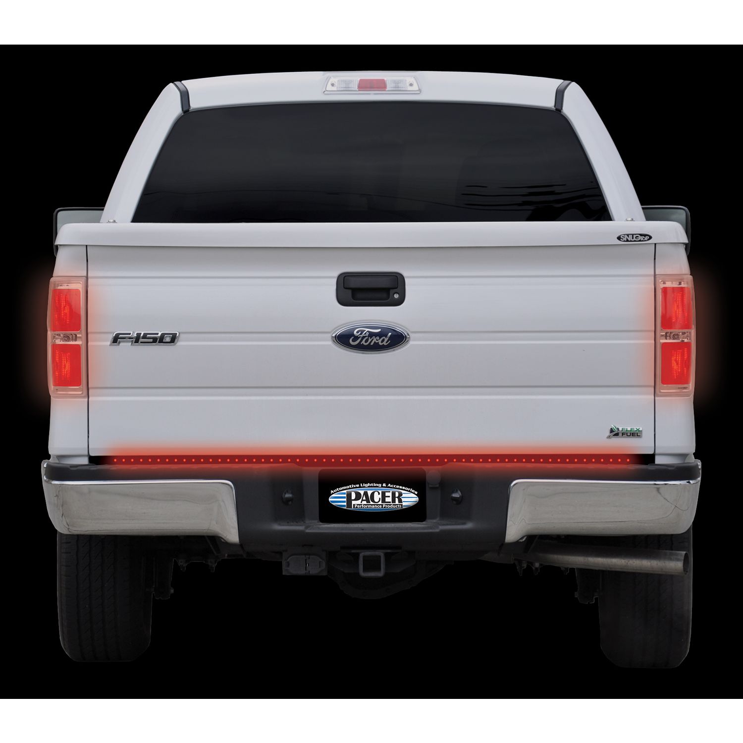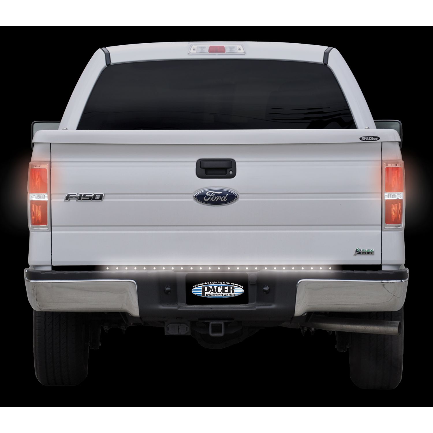 Pacers Outback F5 Light Bars features bright multi-colored L.E.D.'s with five functions including Red L.E.D. running and brake lights, Amber L.E.D. right and left turn signals and White L.E.D. reverse lights. They mount neatly between the tailgate and rear bumper to add visibility to vehicles following behind. This 60" version fits most full-size pickups and some sport utility vehicles, and includes a simple 4 prong connector with two additional wires for hookup. All necessary hardware and wiring is included and they can be hard mounted or using included 3M self stick tape. Sold separately.