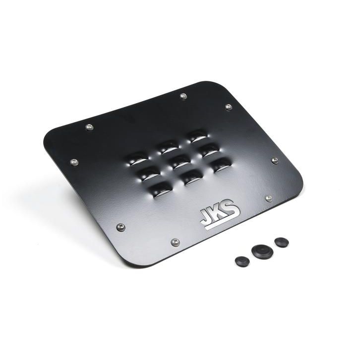Eliminating your Jeep's factory spare tire carrier exposes the plastic/rubber factory cabin vent. Without your spare present, his unsightly plastic allows an increased amount of dirt/debris to enter the tailgate and can lead to premature rust & corrosion. Covering it completely, on the other hand, will affect cabin airflow when the top/doors are on and cause the HVAC system not to work properly. This JKS tailgate vent kit replaces the brittle, plastic factory vents with a louvered metal plate to prevent breakage, minimize the likelihood of interference from debris, and allow free airflow as intended by the factory design.