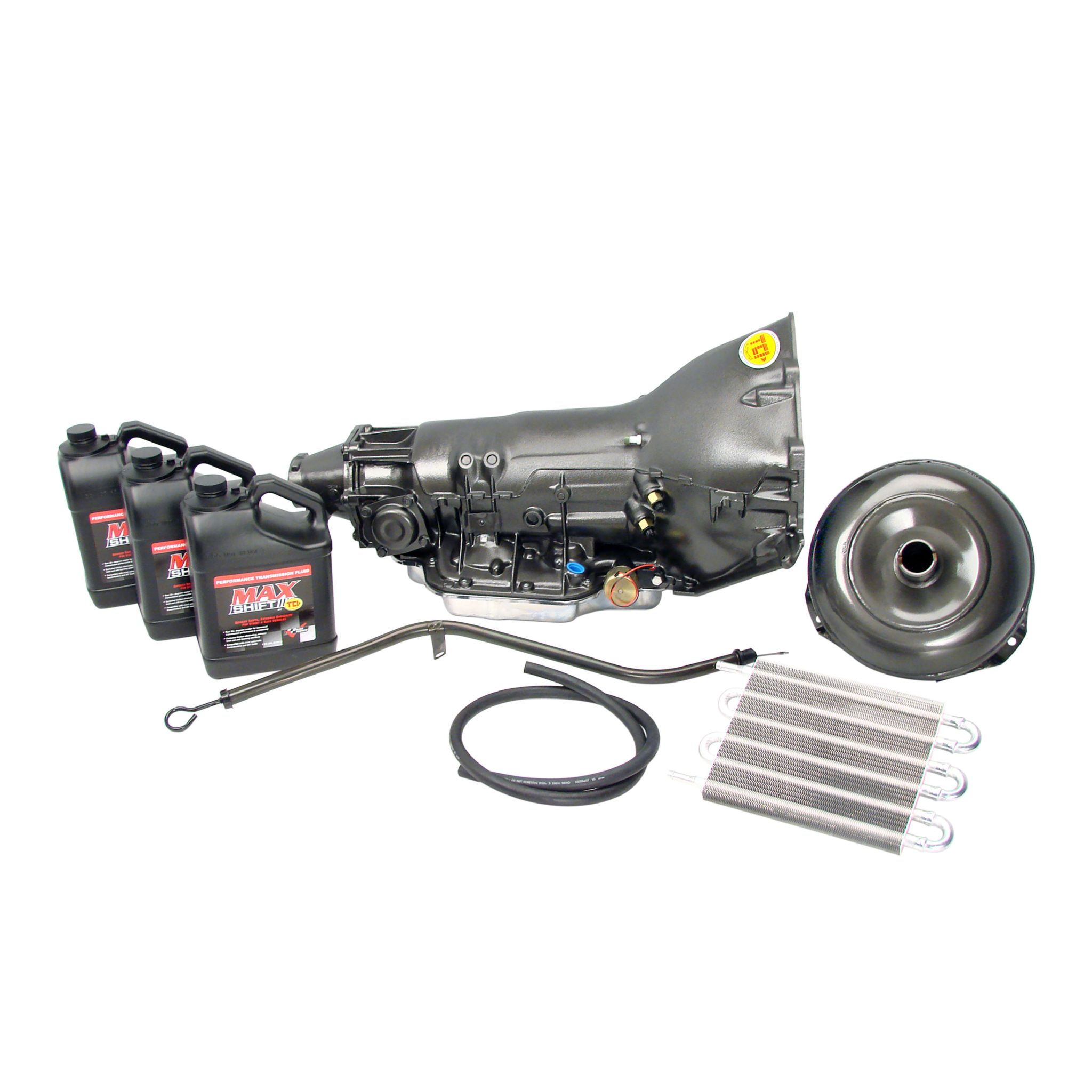 This TH400 Transmission is equipped with TCI StreetFighter components to handle up to 650 HP from Chevrolet Engines. Kit includes our 211000 Transmission, 241000 Converter, Dipstick, and Max Shift Fluid.