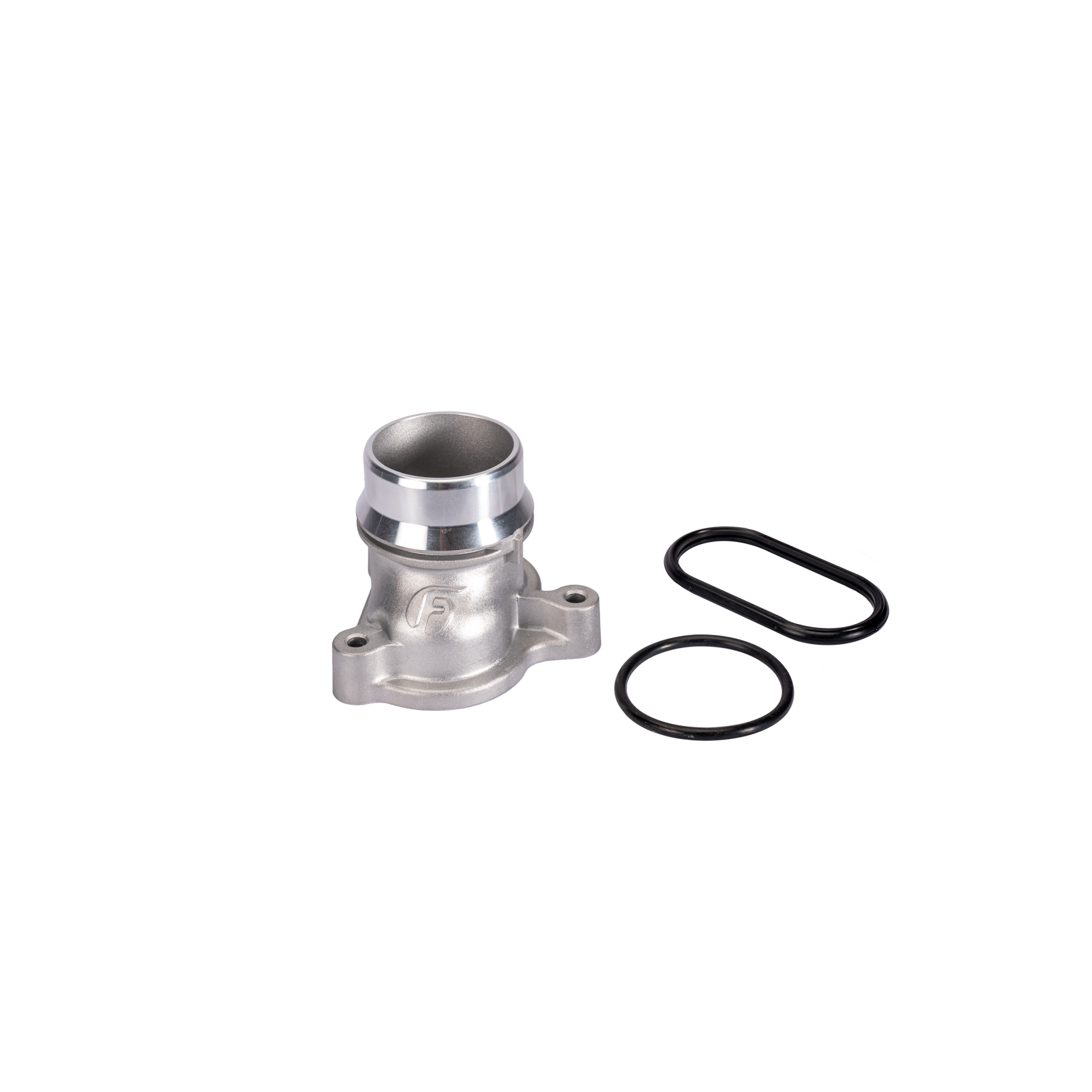 Upgrade your plastic OEM or aftermarket engine coolant thermostat housing on your 6.7L Power Stroke with our more durable cast aluminum model! Our direct replacement thermostat housing works with all factory and replacement thermostats. New O-rings included with the kit. PROBLEM OVERVIEW COMPLAINT: Coolant leaks around the thermostat housing area, a low coolant level, or the smell of coolant during engine operation or after operation. CAUSE:A cracked thermostat housing will result in a coolant leak, potentially leading to engine overheating and damage. Visual Inspection: Carefully inspect the thermostat housing for cracks or damage. Pressure Test: Perform a coolant system pressure test to ensure the system maintains pressure and observe for leaks at all split lines, including the thermostat housing and coolant crossover manifold. SOLUTION: The Fleece Performance thermostat housing upgrade is a drop-in, direct factory replacement for the weak plastic housing that can become brittle overtime! Application Notes Replaces Ford Part Number: RH315 (LC3Z8592B) and Dorman Part Number 902-1074 Fits the following vehicles: 2011-2025 F250 Super Duty 2011-2025 F350 Super Duty 2011-2025 F450 Super Duty 2011-2025 F550 Super Duty 2016-2019 F650 Super Duty 2016-2019 F750 Super Duty 2021-2026 F650 Super Duty 2021-2026 F750 Super Duty 2020-2025 F600 Super Duty