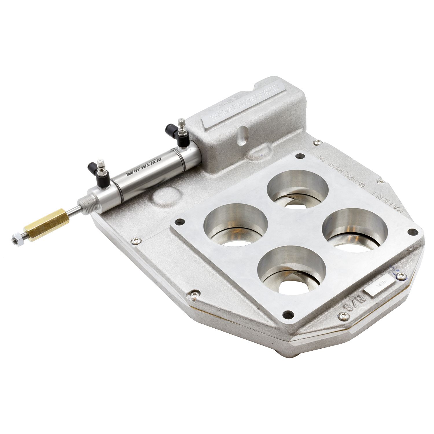 Dedenbears Ts6 Disc Style Base Plate Throttle Stops Sit Underneath The Carburetor And Operates Two Rotating Discs Which Pinch Off Air/Fuel Flow While Allowing The Carburetor To Remain In Wide Open Position In Order To Help Assist A Drag Car In An Electronics Class Precisely Dial In To A Pre-Determined Et (Such As Super Classes) Or To Aid In Running A Higher Mph For A Given Et. This Co2 Operated Stop Has No Airflow Restrictions When Completely Open, Allowing Your Engine To Reach Maximum Performance When The Stop Is Not Engaged, Making It Perfect For Huge Horsepower Applications That Tend To Spin The Tires When A Conventional Throttle Stop Opens Or Unloads The Chassis When It Closes. Repeatability Is Ensured By Using Needle Roller Bearings On All Moving Parts, Finely Polished Air Cylinder, High Temperature Seals, And Stainless Steel And Brass Construction On Most Of The Parts Coming Into Contact With The Air/Fuel Flow. The Result Is Silky Smooth Movement And Precise Positioning Of The Air Flow Discs. At Only 1 5/8 Inches Tall, Hood Scoop Clearance Is Typically Not A Problem. Closing Adjustment Is Located At The End Of The Air Cylinder For Easy, Accurate Settings. This Ts6B Is Engineered For Use With 2 1/8 (2.125) In. Big Bore, Dominator Style Carburetors.