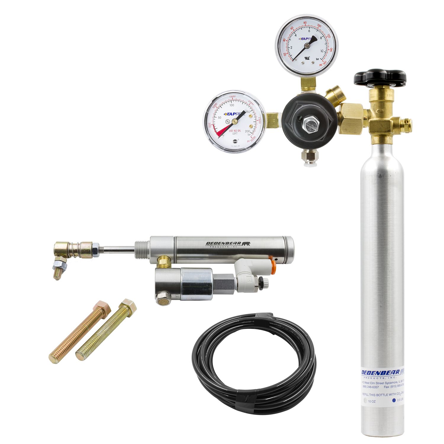 The Dedenbear Ts20K Combines The Heavy Duty Ts20 Stop Together With The Ab10K Co2 Bottle Kit In One Tidy Package To Ensure Youve Got What You Need To Install And Operate The Stop In Your Vehicle. The 7/8 Inch Bore And 2.5 Inch Stroke Used In This Stop Offer Superior Starting Line Control, Compatibility With Dual Carburetor Setups, And Bird Catcher Style Injectors. Chromoly Adjustment Bolts Ensure Maximum Durability. All Dedenbear Linkage Style Throttle Stops Come With A Needle Valve To Control The Opening Rate Of The Stop, Quick Disconnect Fittings, Stainless Steel Solenoid & Cylinder, High Temperature Seals And Plated Steel Parts For Corrosion Resistance.